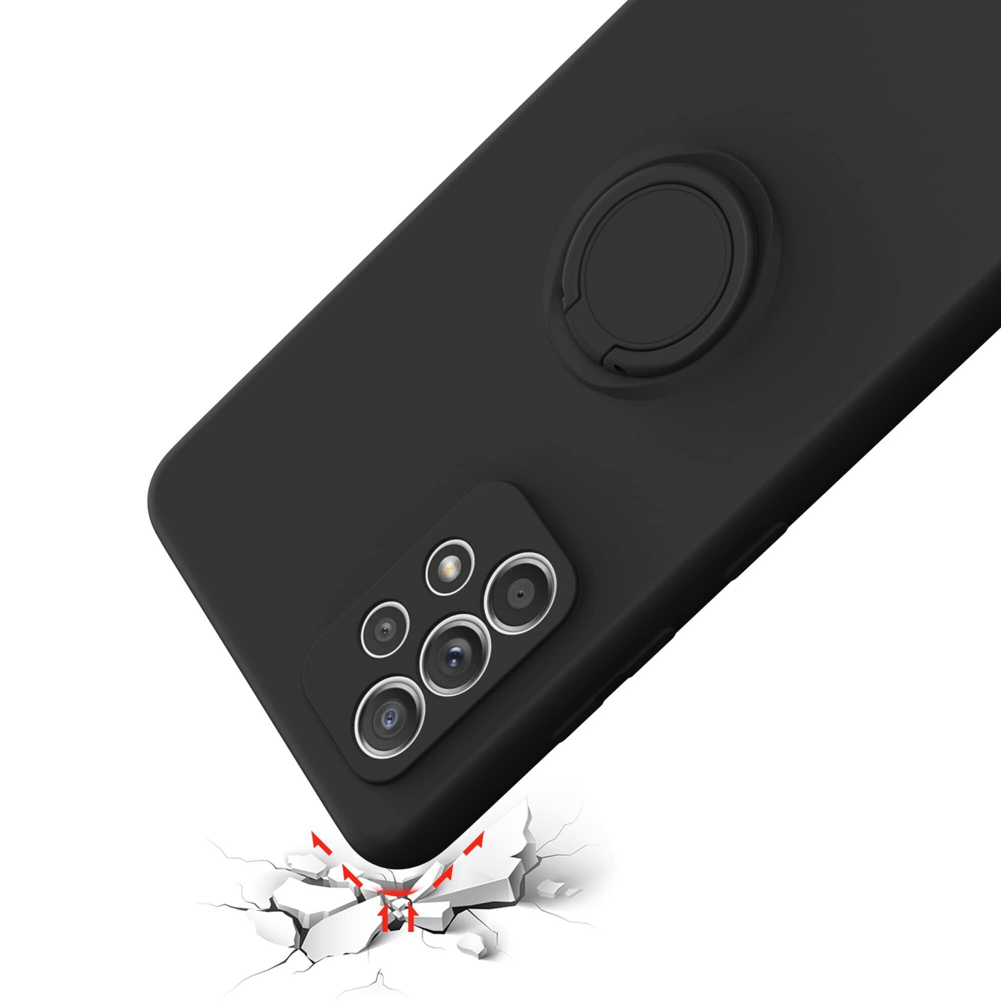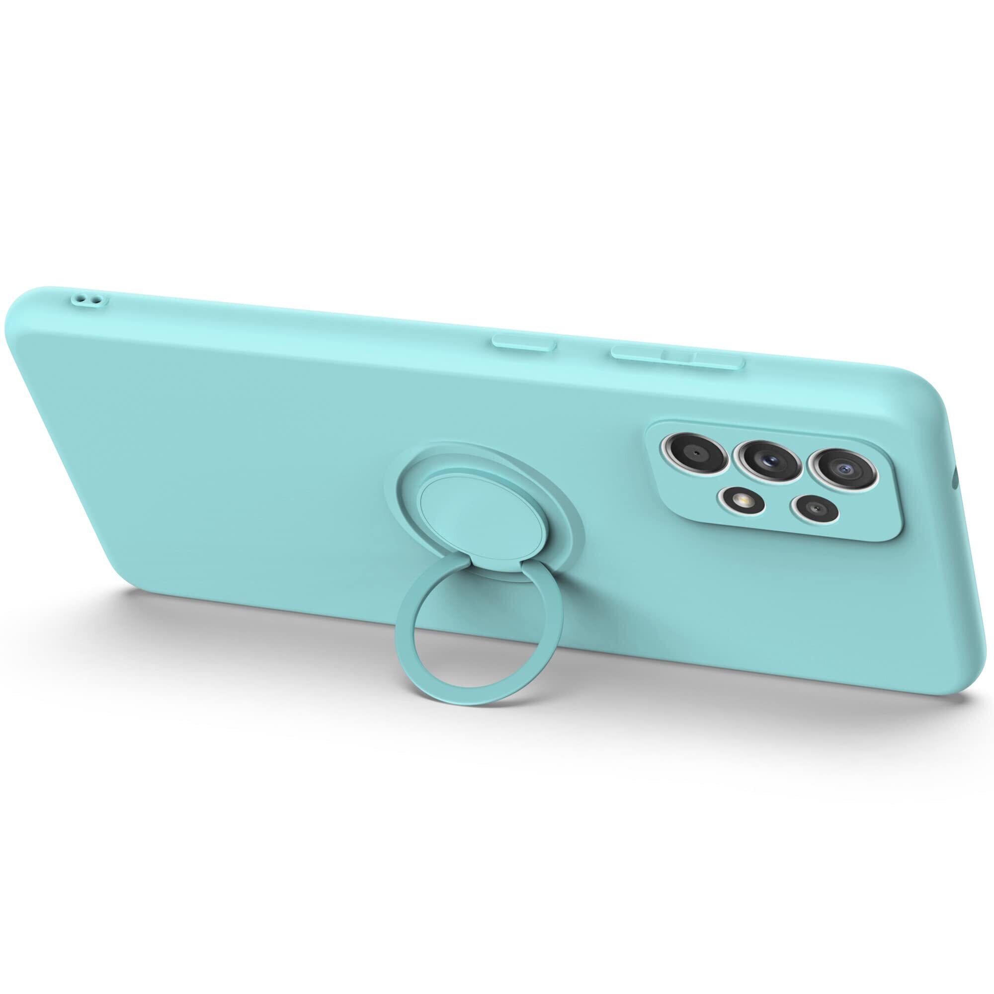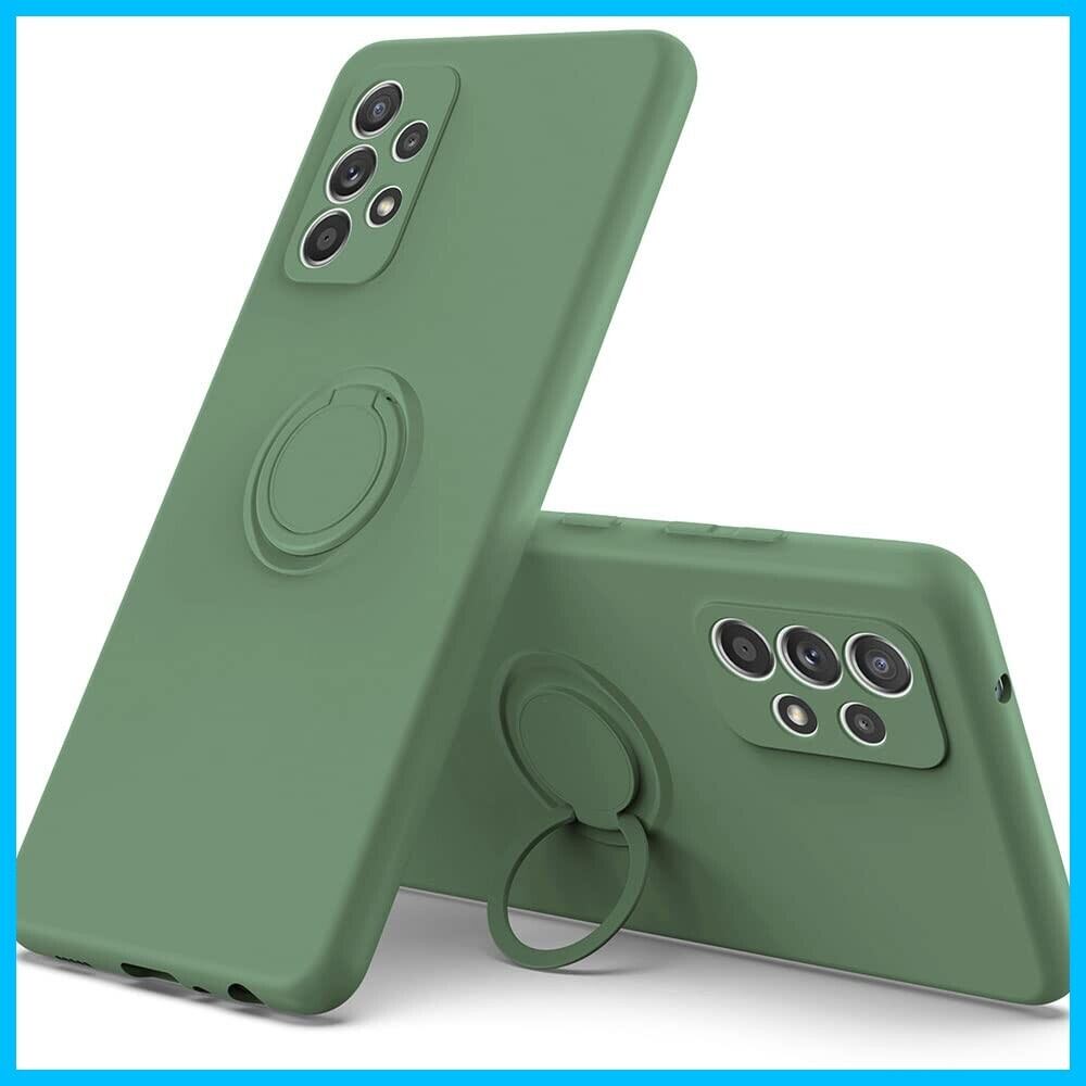 Galaxy A53 5G SC-53C SCG15 用 リング付き ソフトケース ライムグリーン TPU保護ケース スタンド機能付き 360回転カバー 耐衝撃 シリコン 素材 超薄型 背面カバー 落下防止