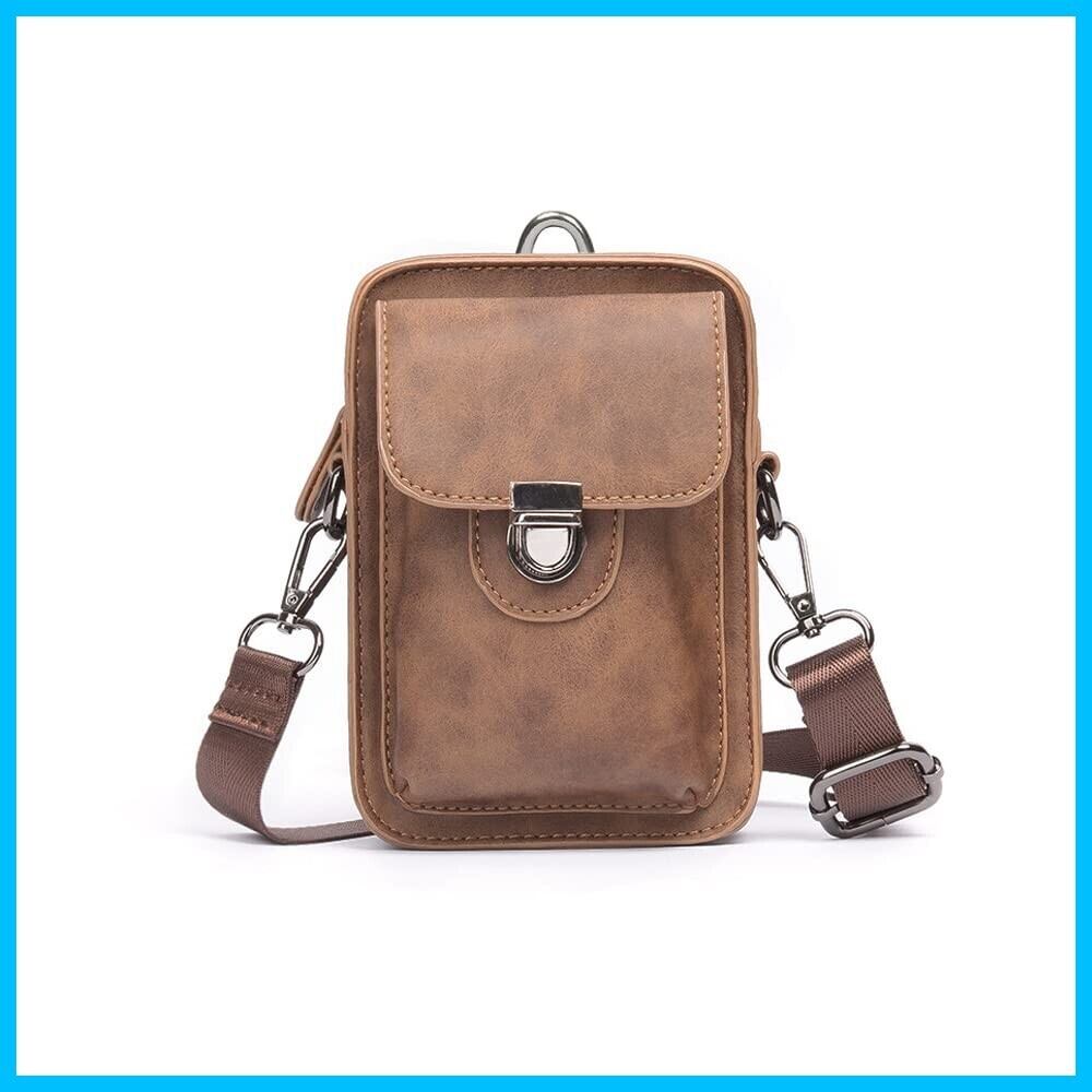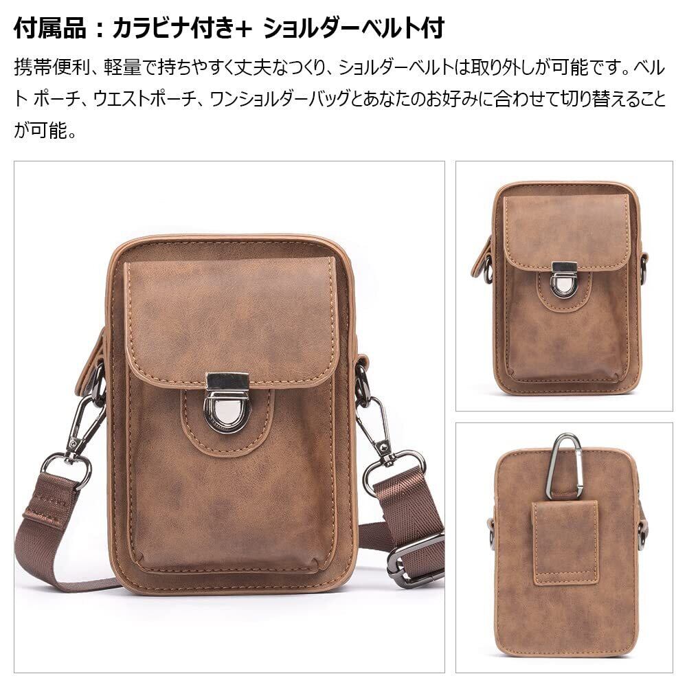 革ミニショルダーバッグ メンズ ポシェット4way斜め掛け ミニ サコッシュ カラビナポーチ ベルトループ ポーチ ミニ ウエストバッグ カラビナ付き ショルダーベルト付通学 通勤 ミニバッグ 紳士用 男性用6017 (ブラウン)