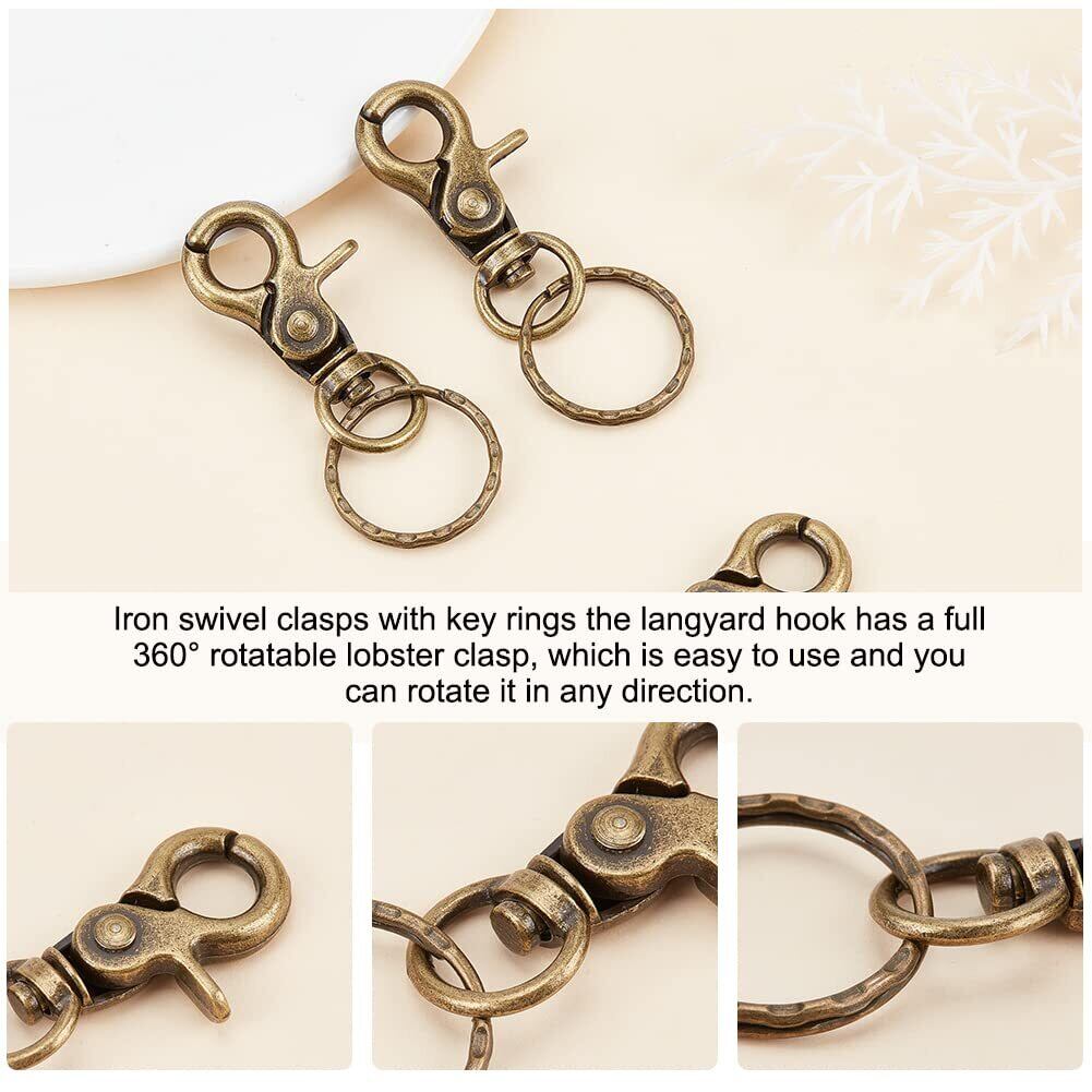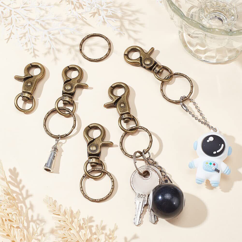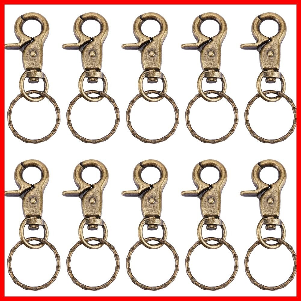 PandaHall 約10個/箱 63x25mm ナスカン キーホルダー 2重 リング付き 金具 パーツ DIY用 鉄製 アンティークゴールド 手芸用品 クラフト用品