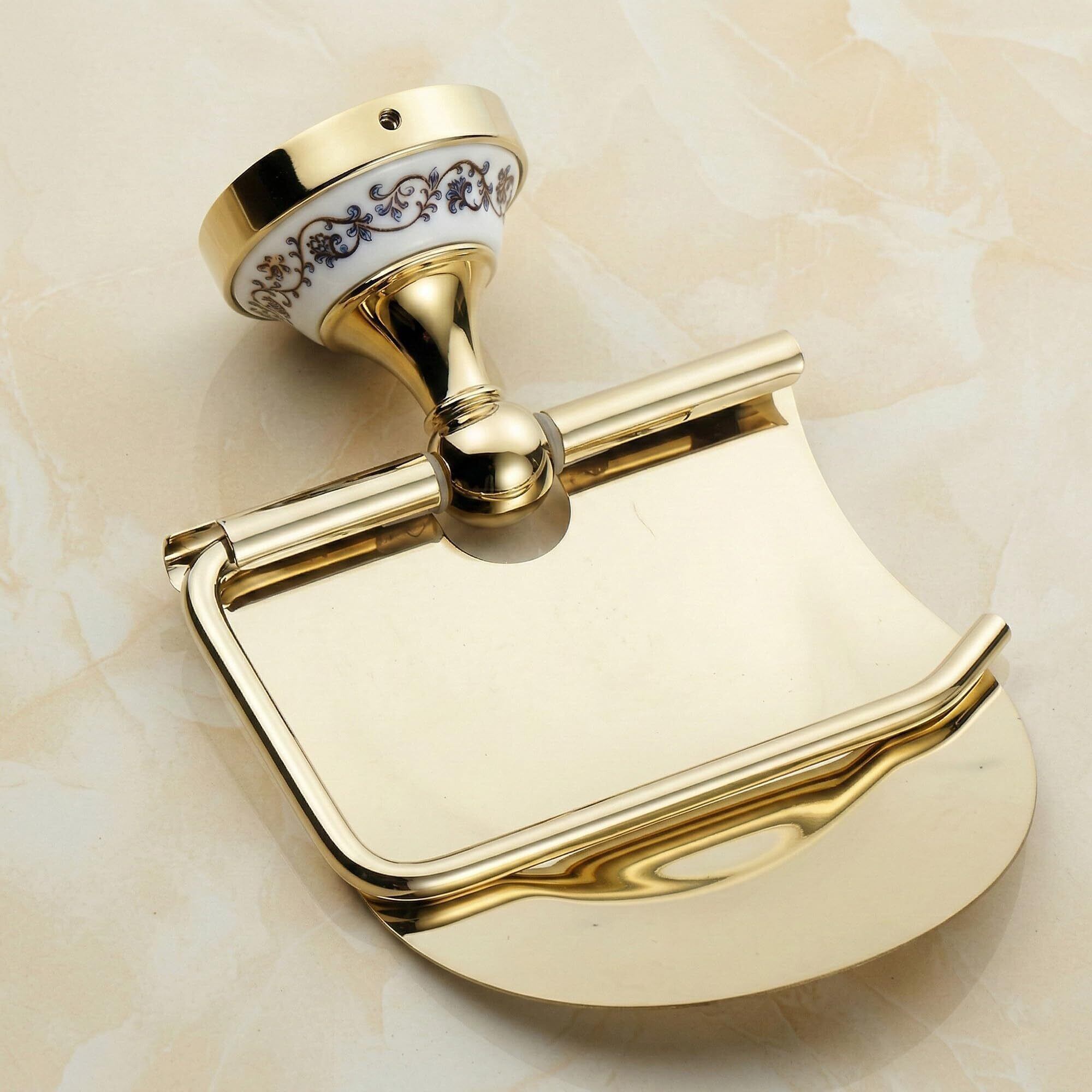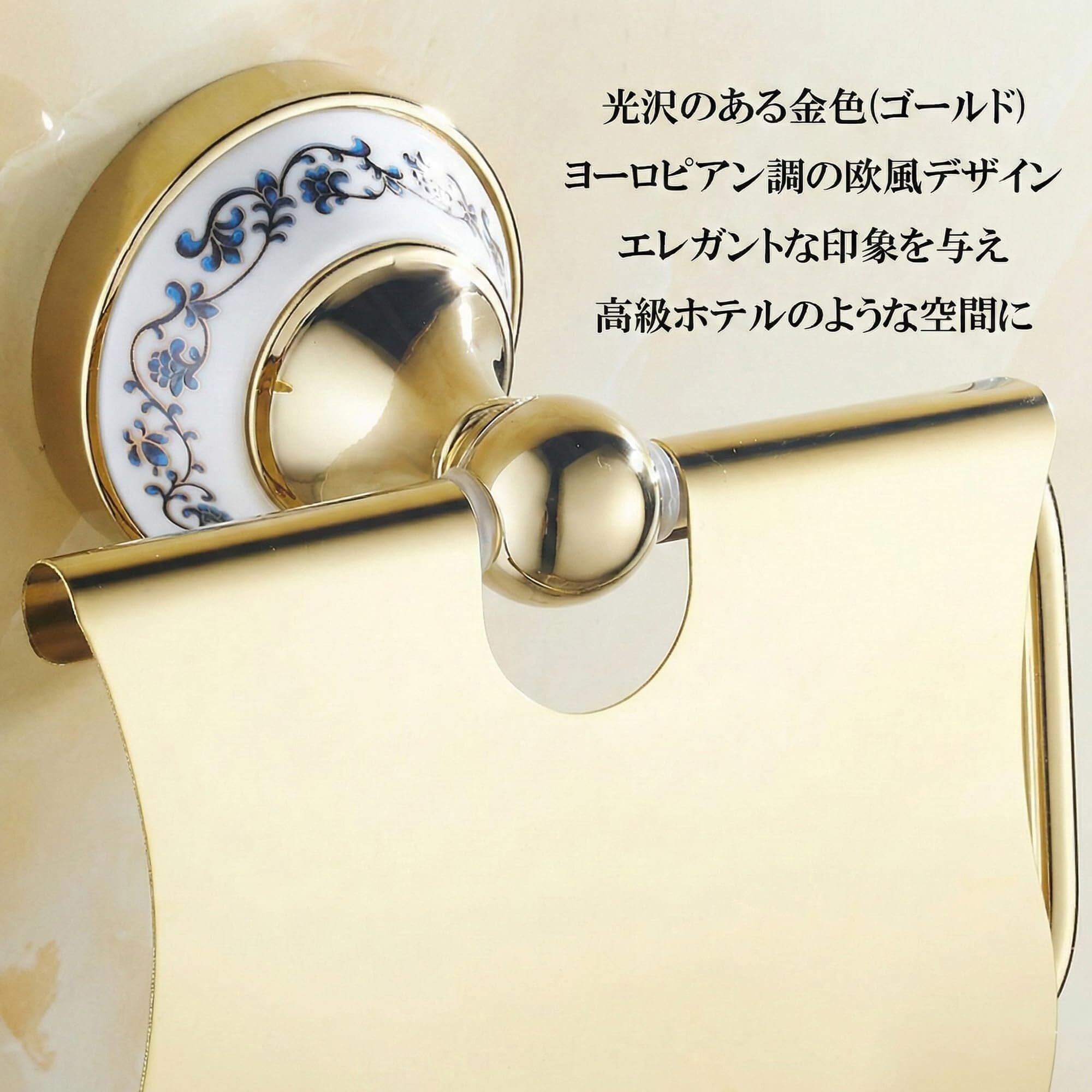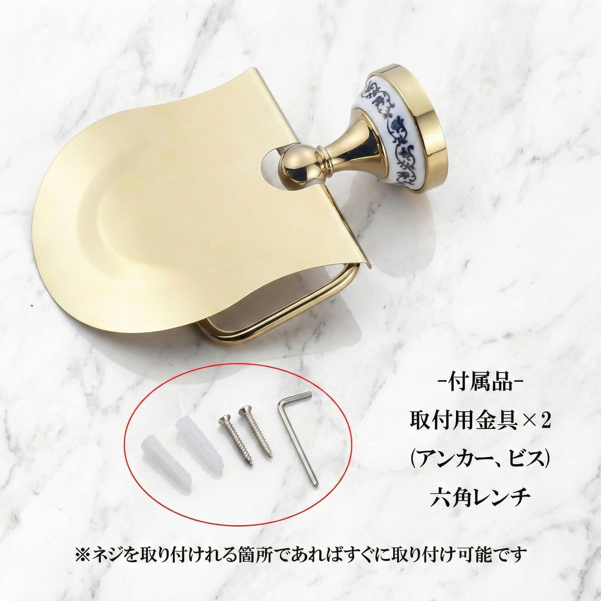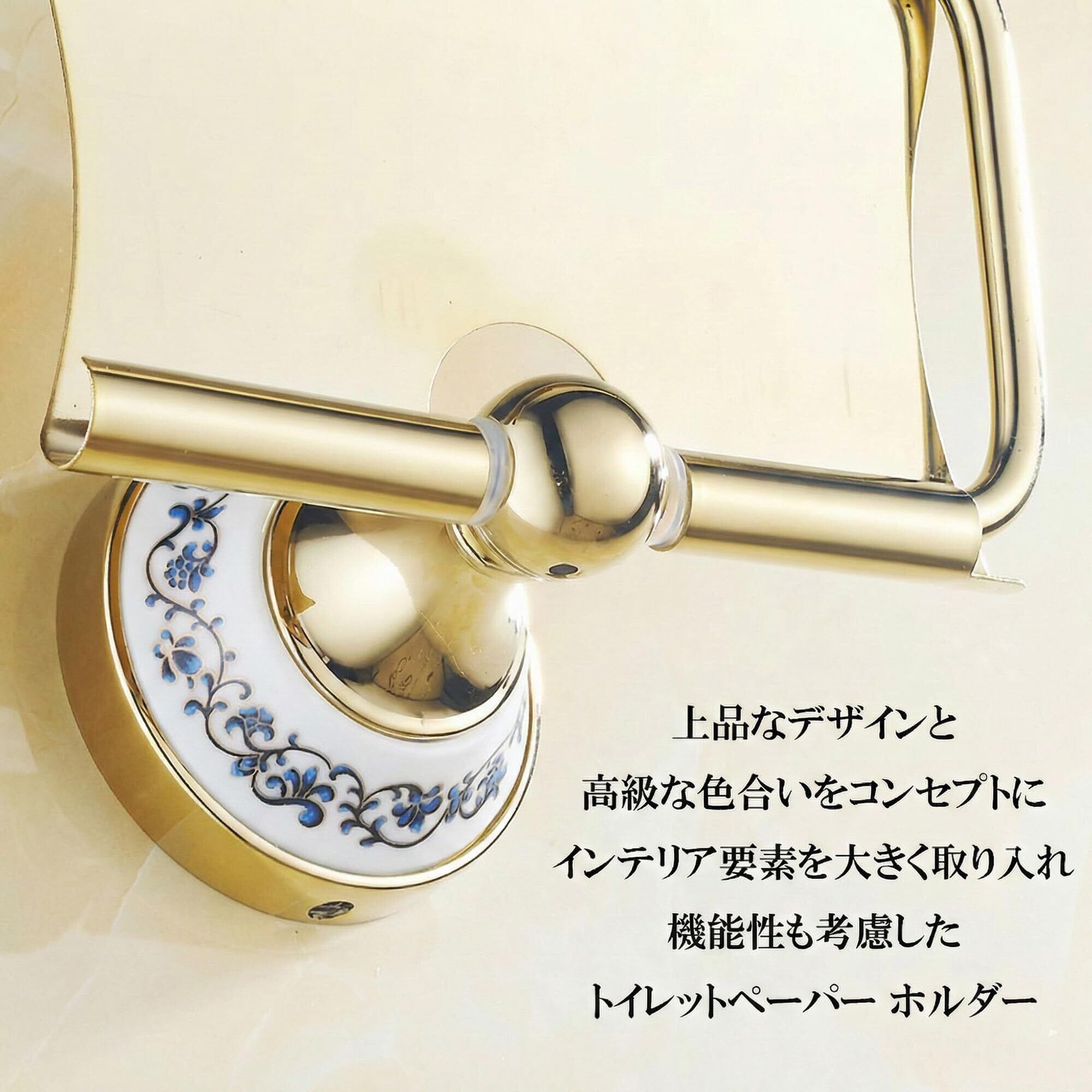 トイレットペーパーホルダー ステンレス製 アンティーク調 おしゃれ 欧風 インテリア 壁掛け トイレ 洗面所 (金・ゴールド)