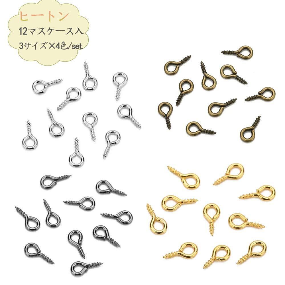 サムコス ヒートン ネジ フック 金具 パーツ ハンドメイド DIY 用 手芸用品 8mm 10mm 12mm 12マスケース入り 3サイズ×4色/セット 合計360個