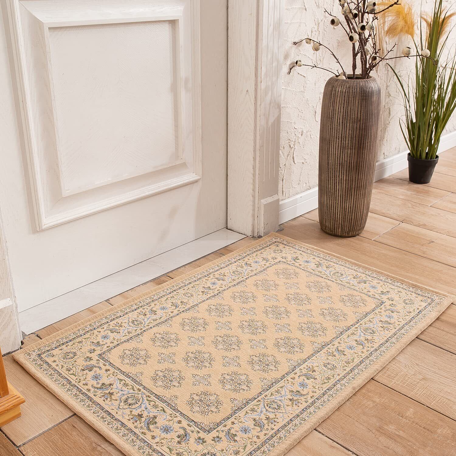 INSIMAN カーペット 玄関マット洗える 屋外 屋内 北欧 おしゃれ ドアマット 泥落とし ゴブラン織り すべり止め 床暖房対応 50 * 80cm 業務用 家庭用 オフィス用 ダークベージュ