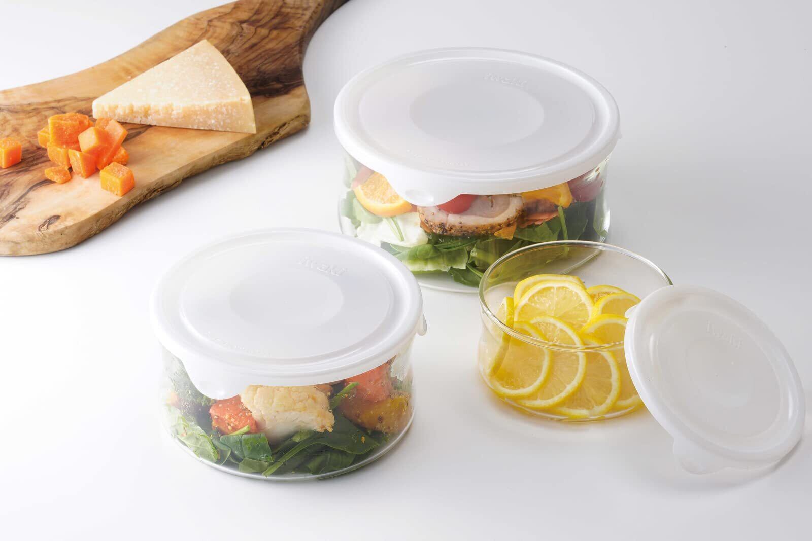 iwaki(イワキ) 耐熱ガラス 保存容器 ホワイト 3点セット New パック & レンジ BT-NPR-3W3