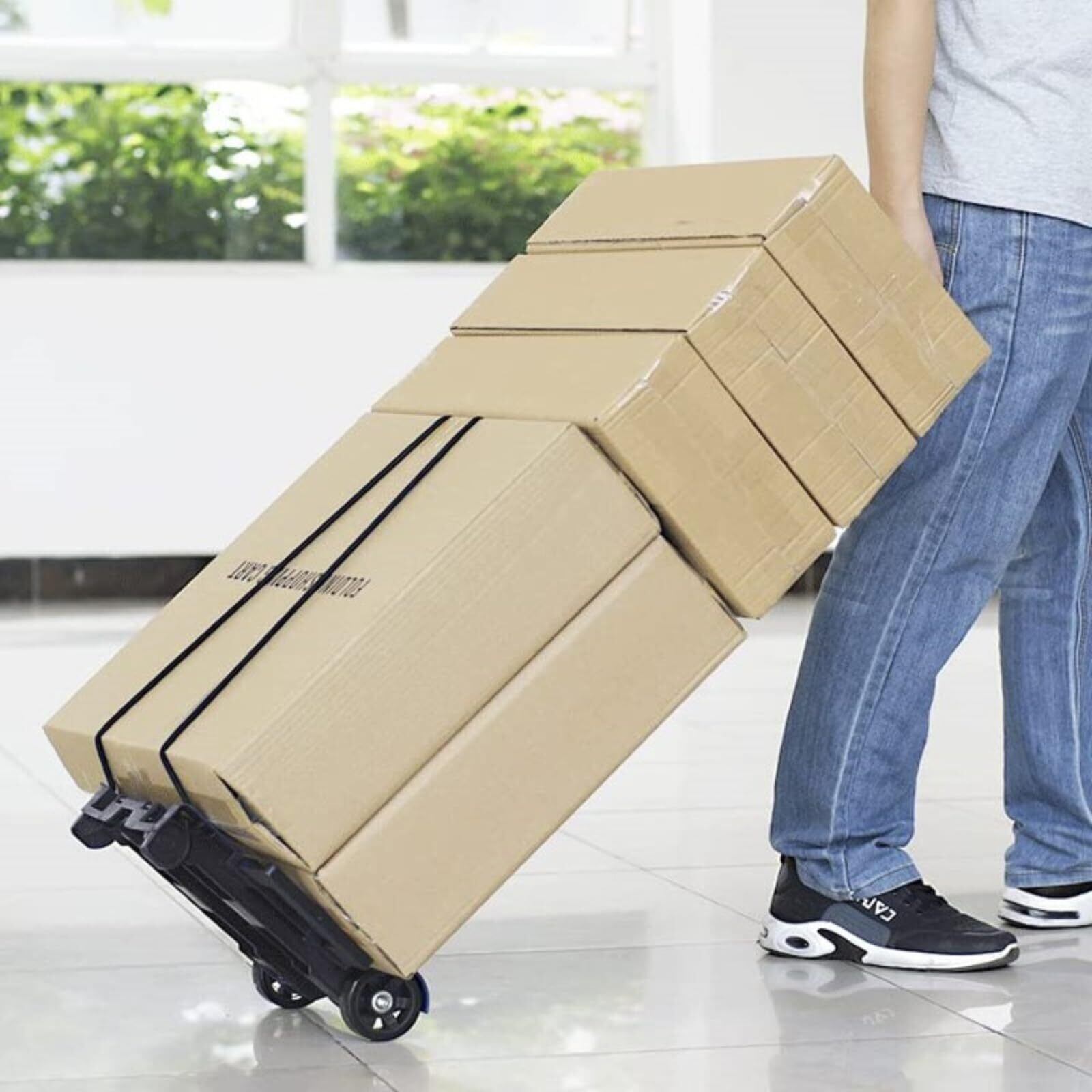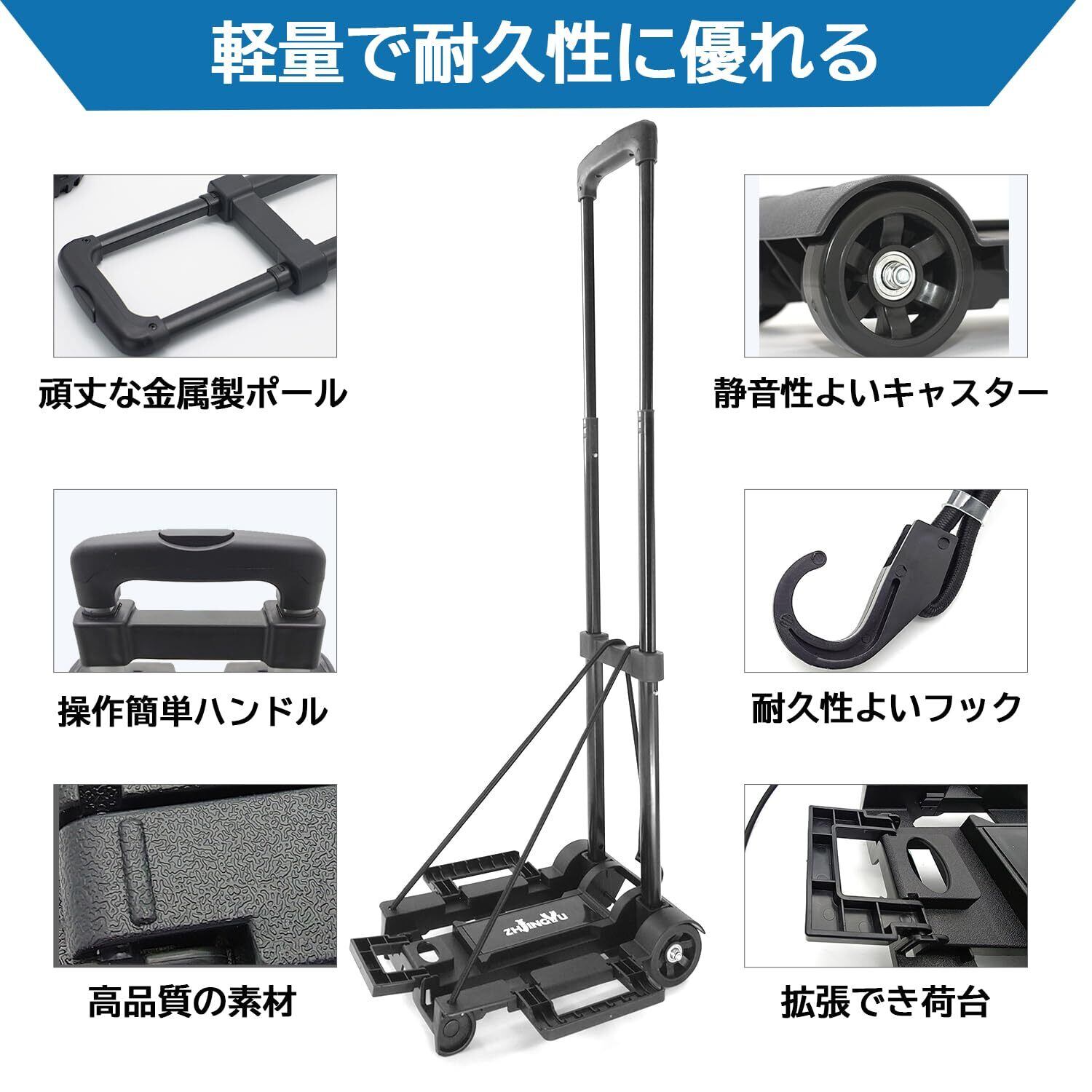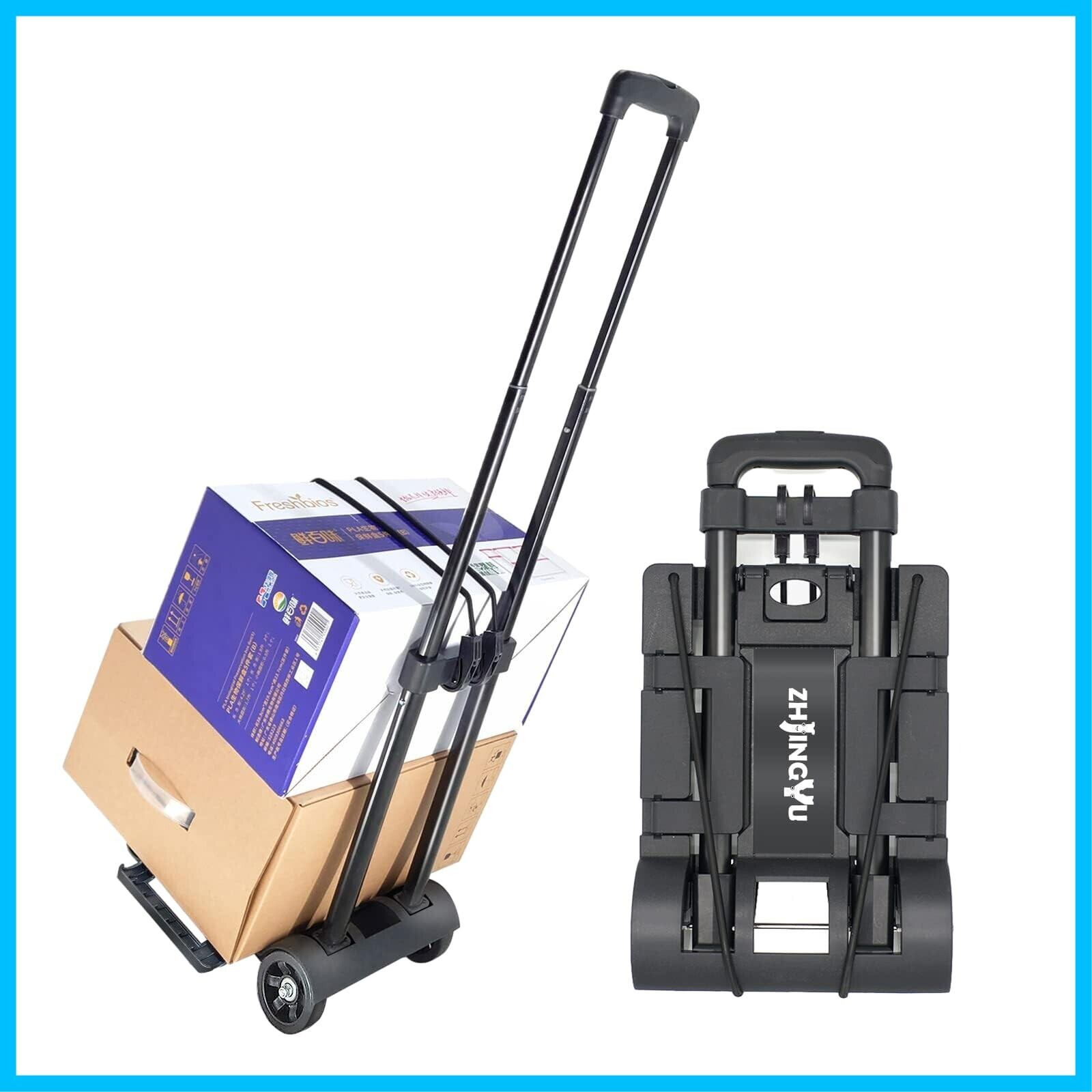 ZHJINGYU キャリーカート 台車 折りたたみ式 軽量 プレート拡張可能 静音 超コンパクト 固定ゴムロープ付 荷物運搬 引越し アウトドア 2輪 ブラック