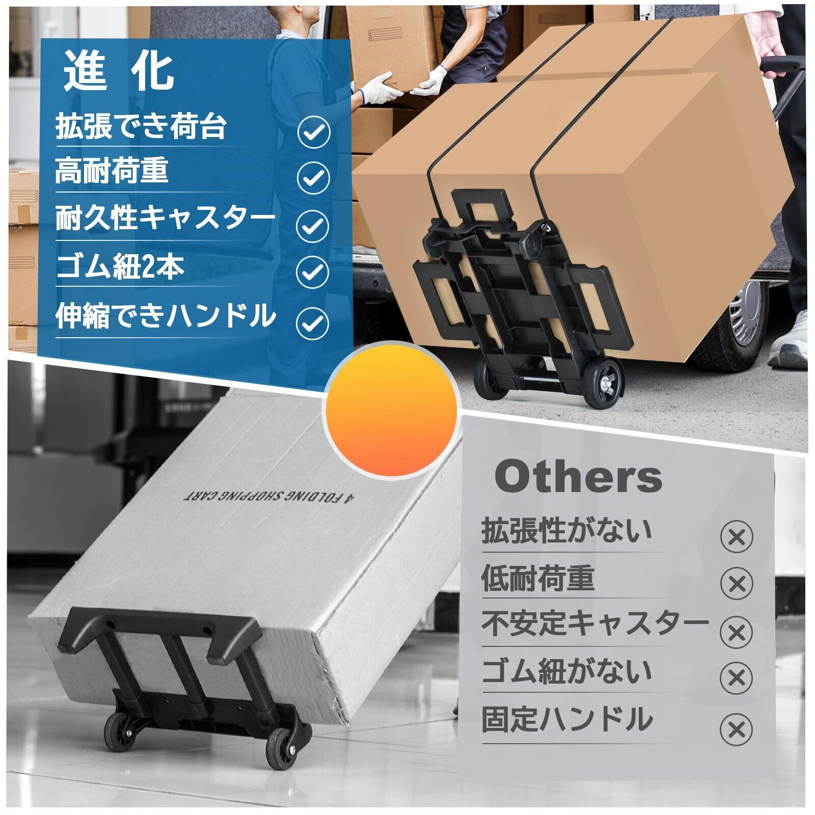 【拡張可能な荷台で幅広い荷物も安心】コンパクトなキャリーカートが多くの人に愛用されていますが、その弱点である荷台サイズを当 たり前キャリーカートは克服しました!当商品としてのこのキャリーカートは荷台を拡張できる設計で、幅広い荷物も安定して運ぶことが可能です
