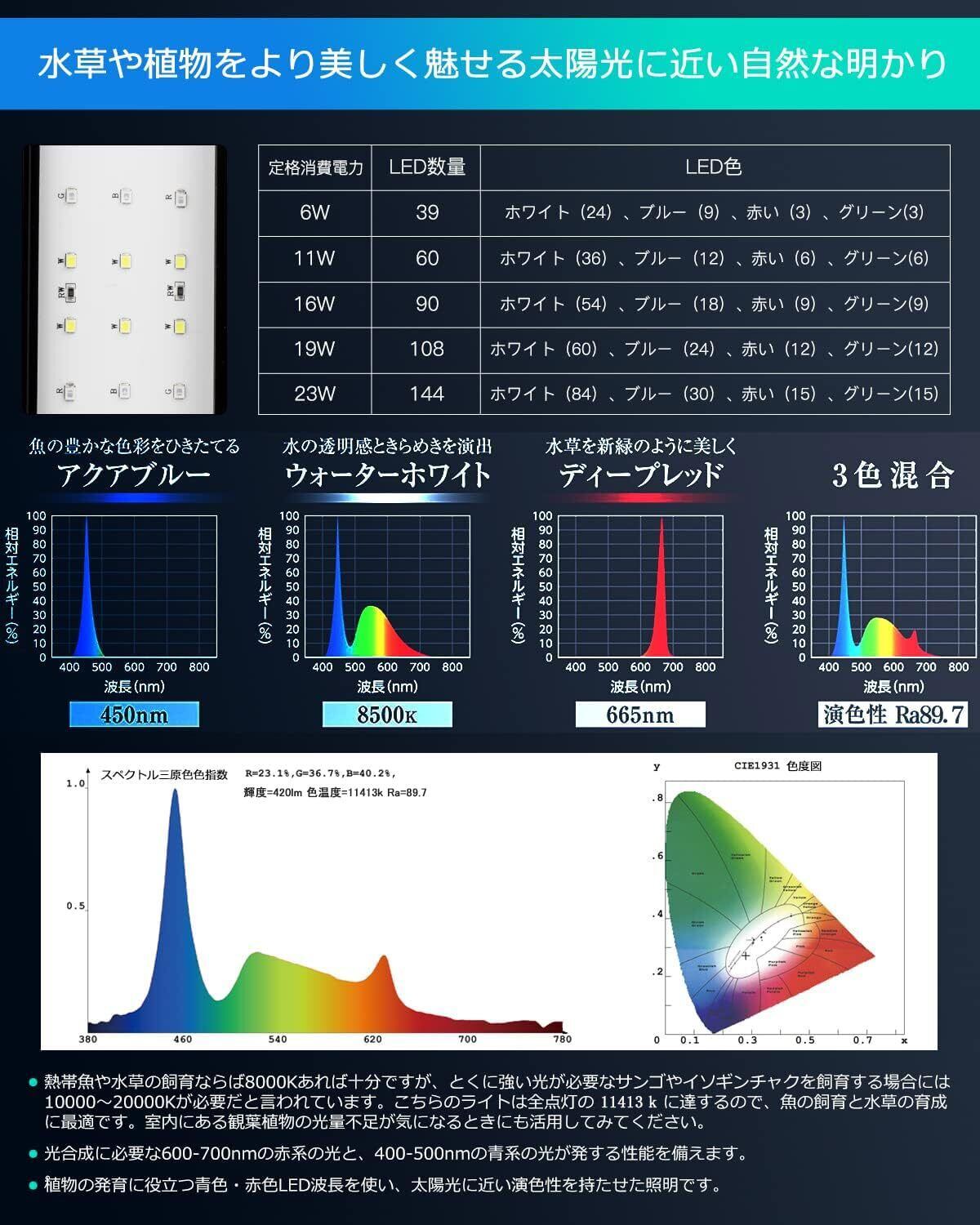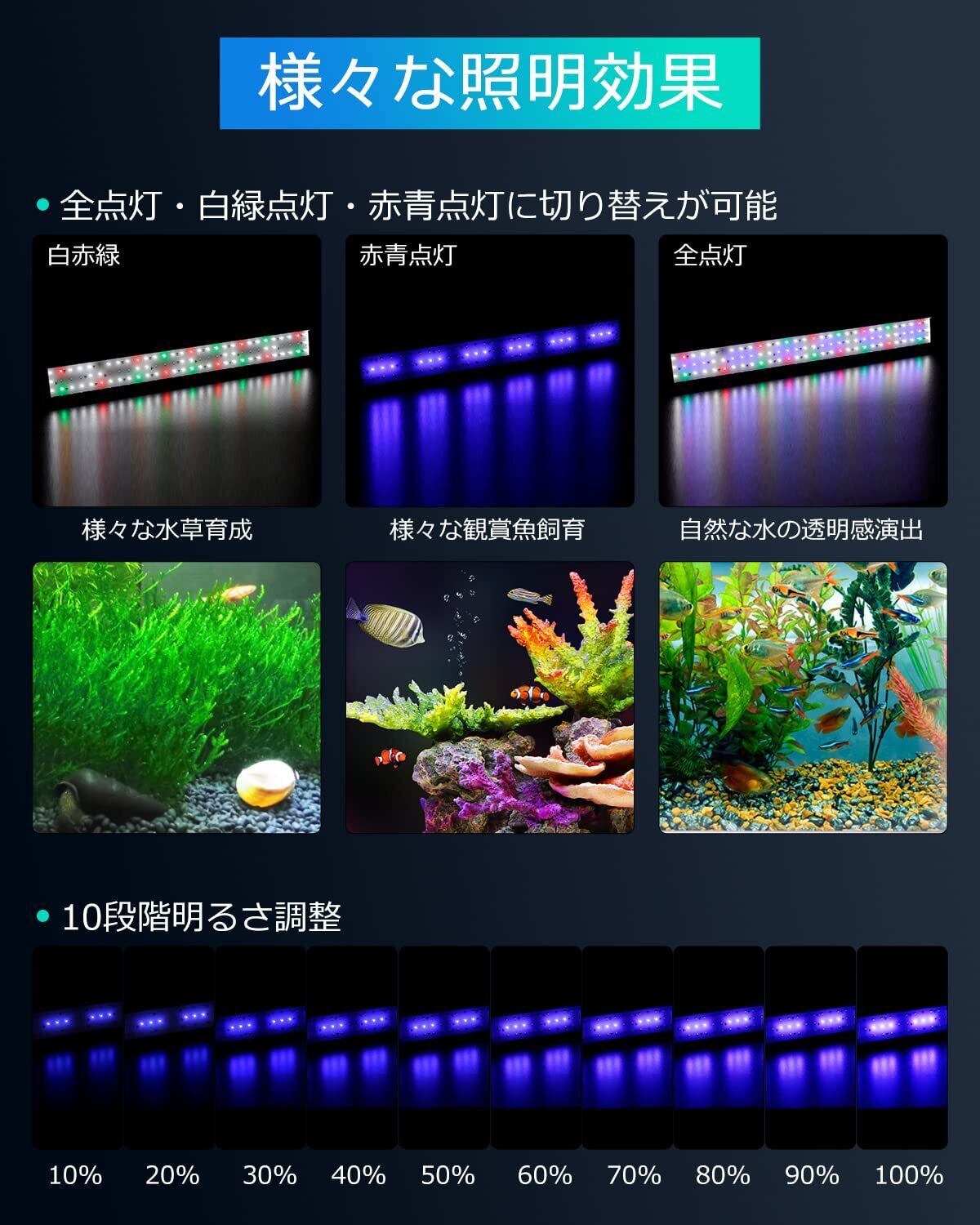 DEWEL 水槽 ライト 水槽用 照明 ledライト アクアリウムライト 防水 タイマ ー 水草 育成 熱帯魚 観賞魚 飼育 3つの照明モード 10段階明るさ調整 45-60の水槽対応