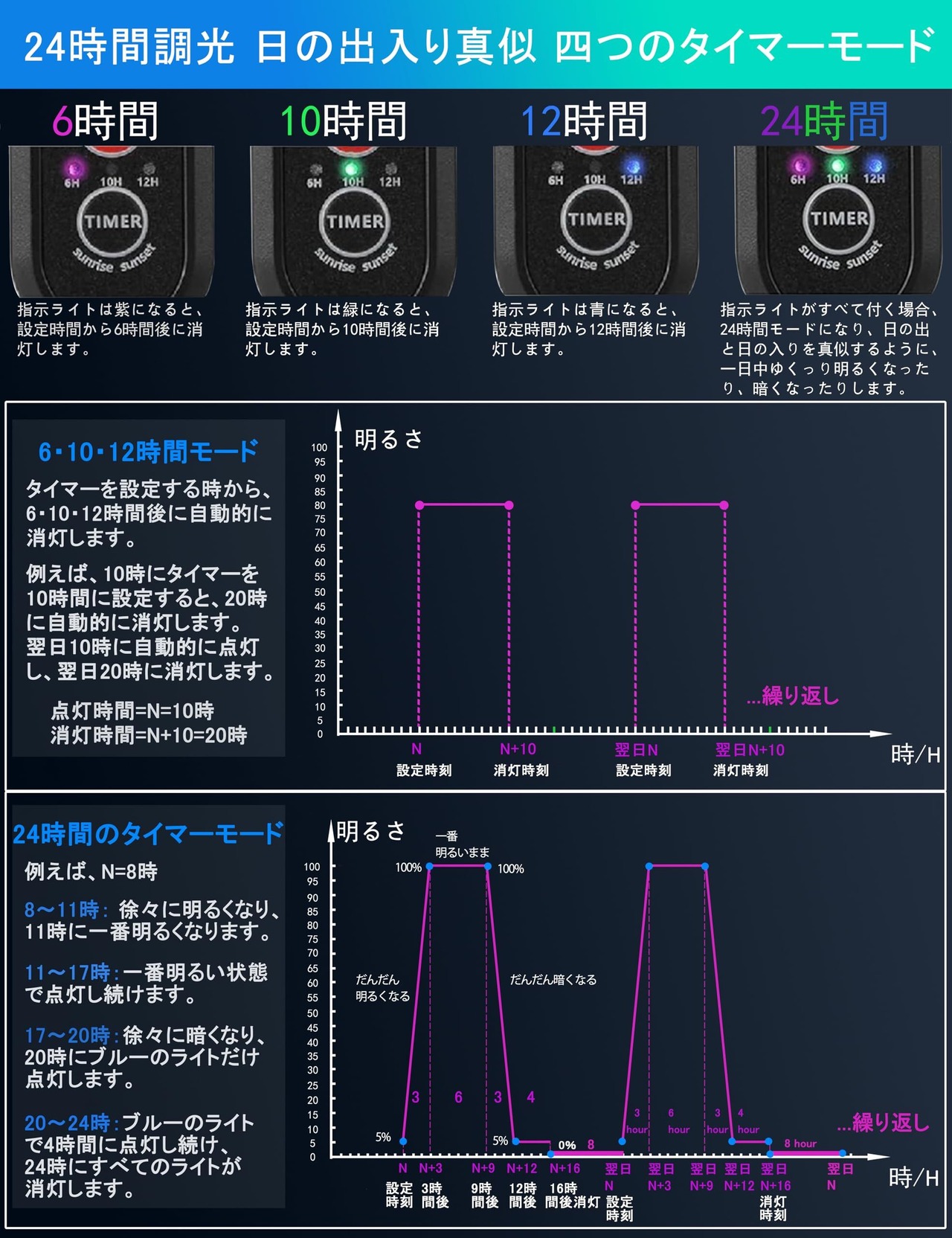 【タイマー式】LED水槽ライトは6時間/10時間/12時間 で三段階のタイマーを設定できます。