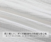 【ダブルガーゼ】ガーゼは手織り感のあるナチュラルな雰囲気にこだわりました。薄い綿のガーゼを2枚合わせにした生地のことをいいます。コットンならではの肌ざわりのよさと、洗えば洗うほどやわらかくなる、肌になじみの良さも魅力です。