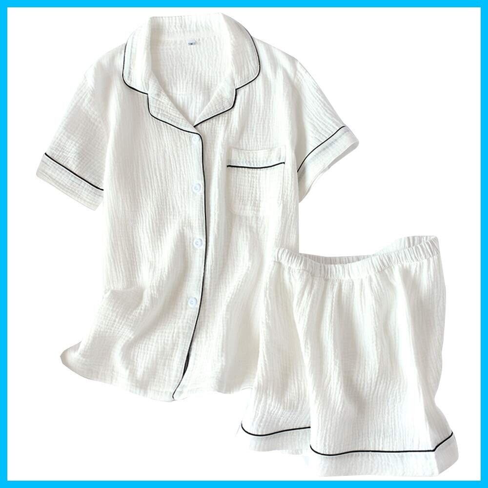 ガーゼパジャマ レディース 綿100% ルームウェア 半袖シャツ ショートパンツ上下セット部屋着 二重ガーゼ 吸汗速乾 通気 肌に優しい 脱着簡単 春夏