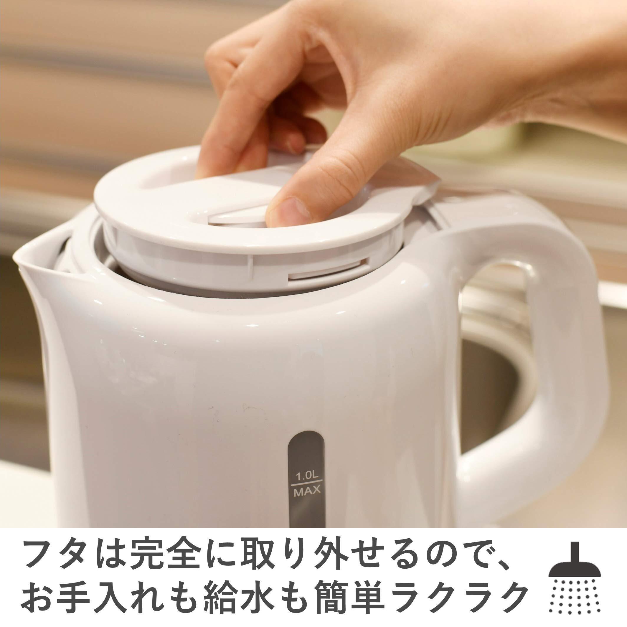 【1200Wハイパワー】1200Wのハイパワーで満水時でも約5分半でお湯が沸かせ、コーヒーや紅茶など、飲みたいと思ったときにすぐお湯を沸かしてくれます。容量も1Lと大容量なので、家族みんなでのティータイムなどにも役立ちます。※沸騰時間は目安で、条件(室温・水温等)によって異なります。