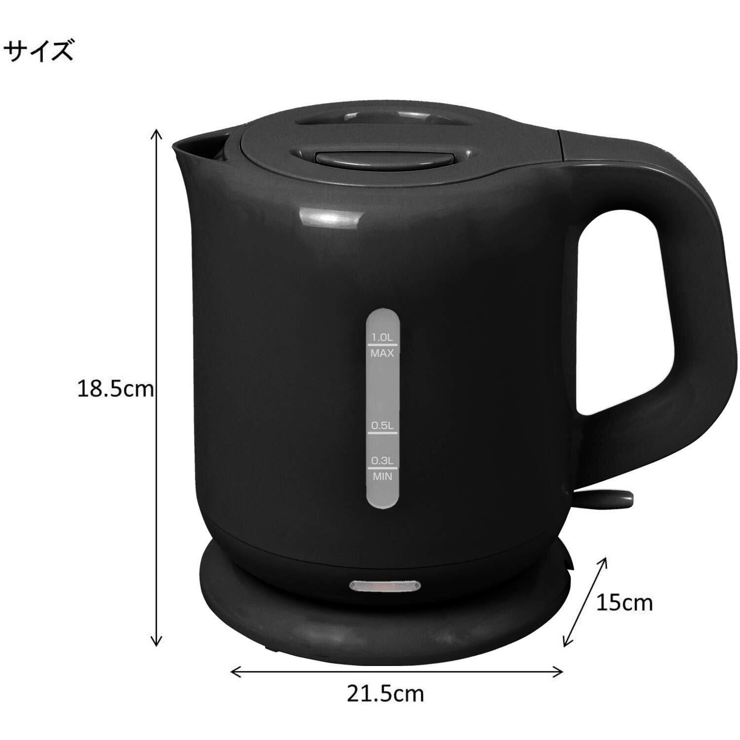 電気ケトル 電気ポット 1.0L 一人暮らし 二人暮らし コンパクト 沸騰自動OFF機能付き ワンタッチ操作 ブラック DKE-100(B)