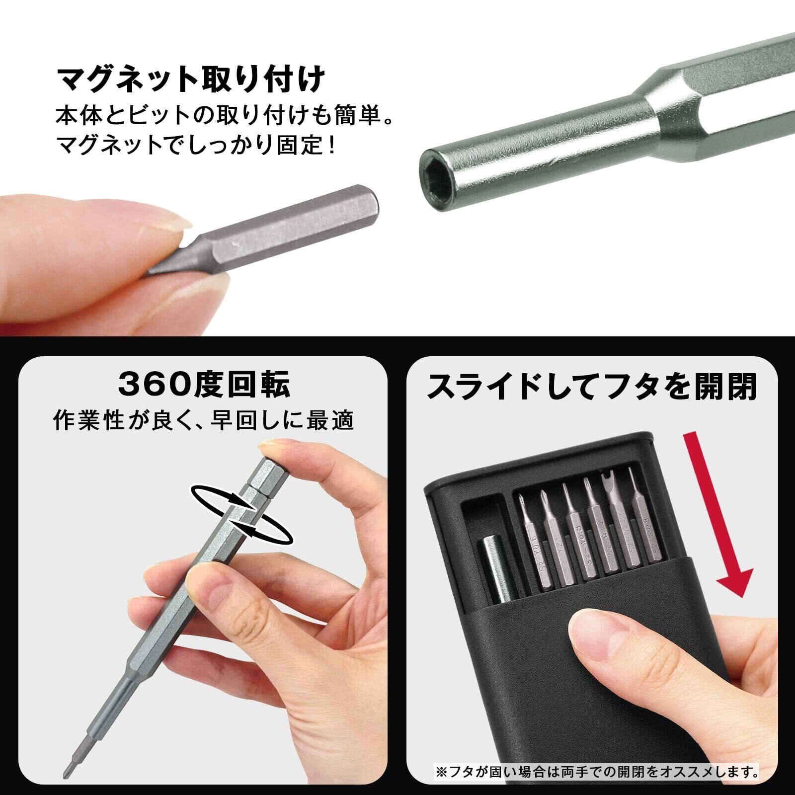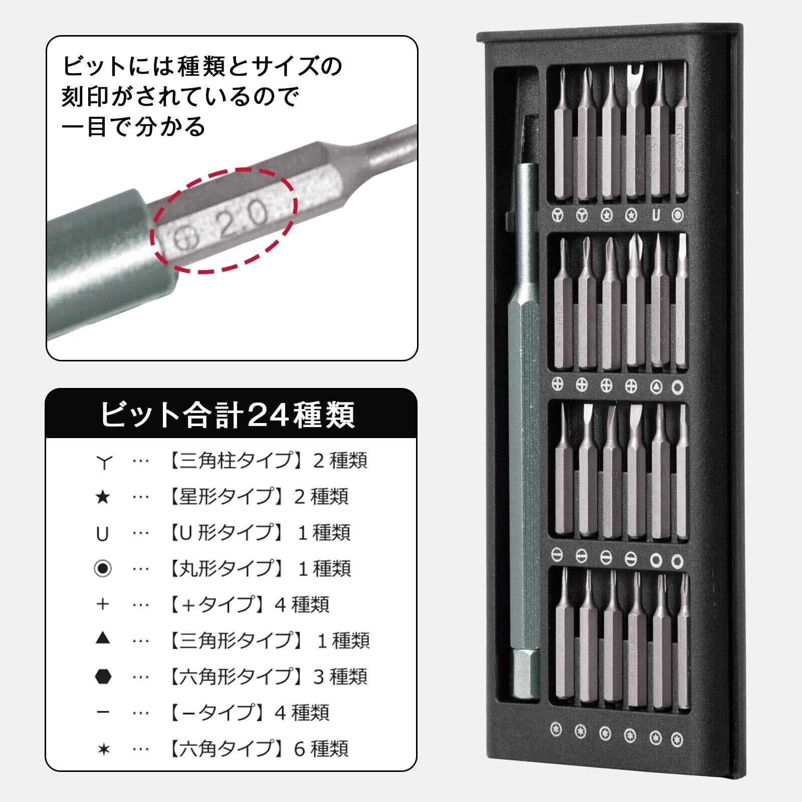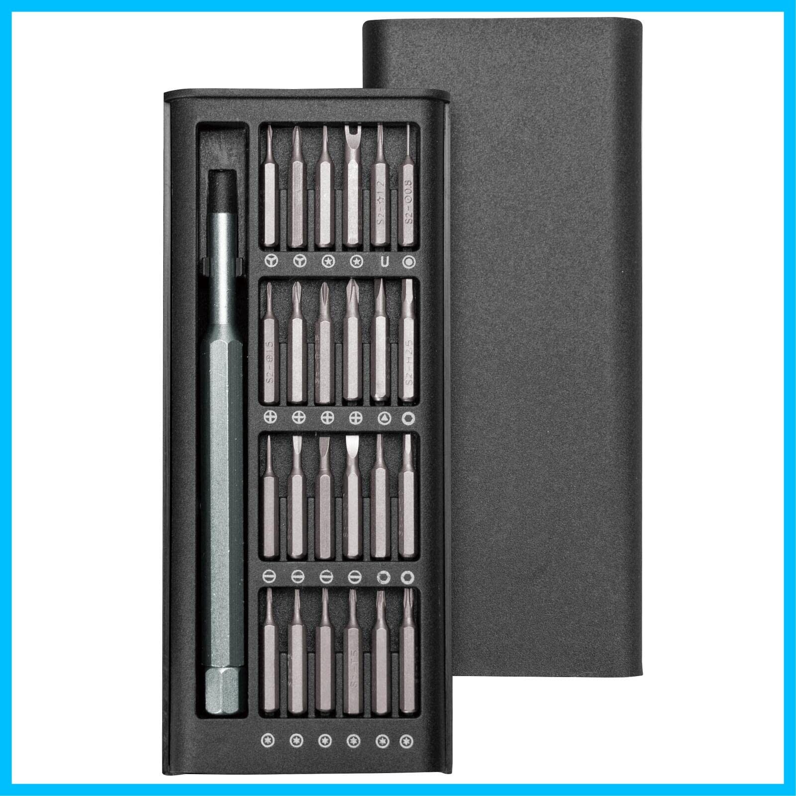 コモライフ マグネット付き 精密ドライバーセット (ビット24種付) ドライバー 精密ドライバー 工具 工具セット 精密ドライバーセット ビットセット トルクスドライバー トルクスドライバーセット ねじ回し ケース付き 360度回転 スライド式 マグネット内蔵 軽量 コンパクト 修理 分解 精密機械 カメラ メガネ パソコン 時計 ゲーム機