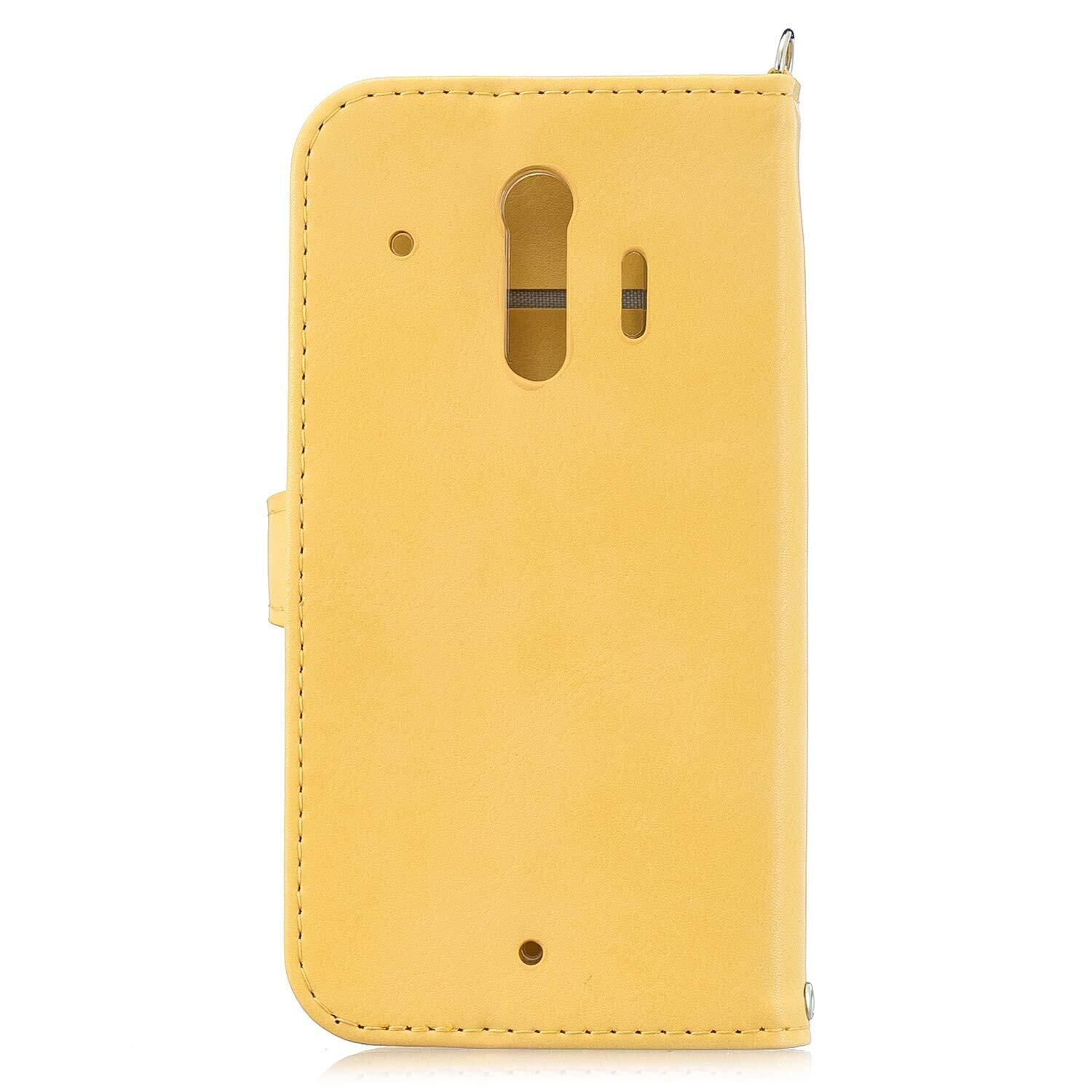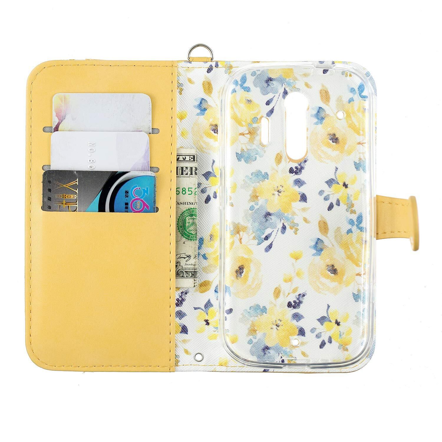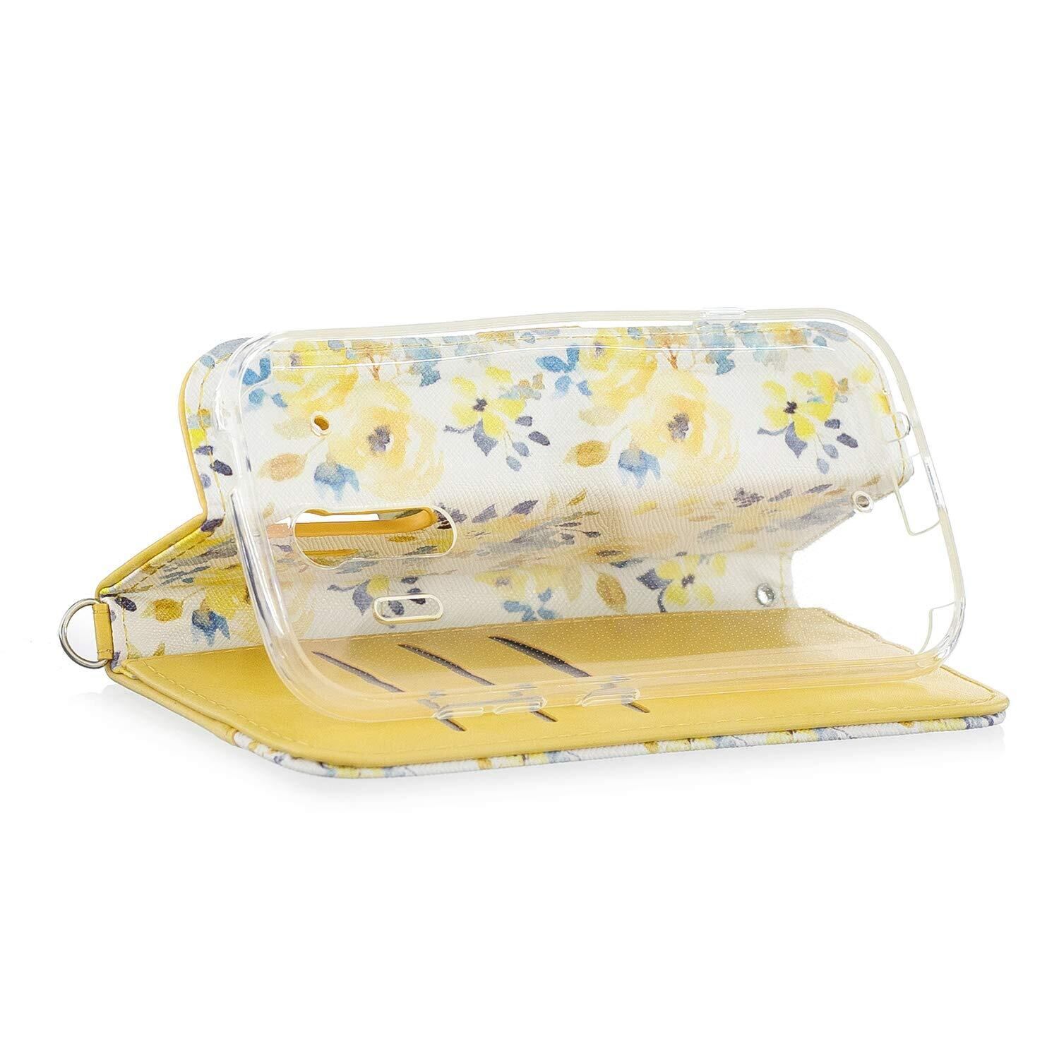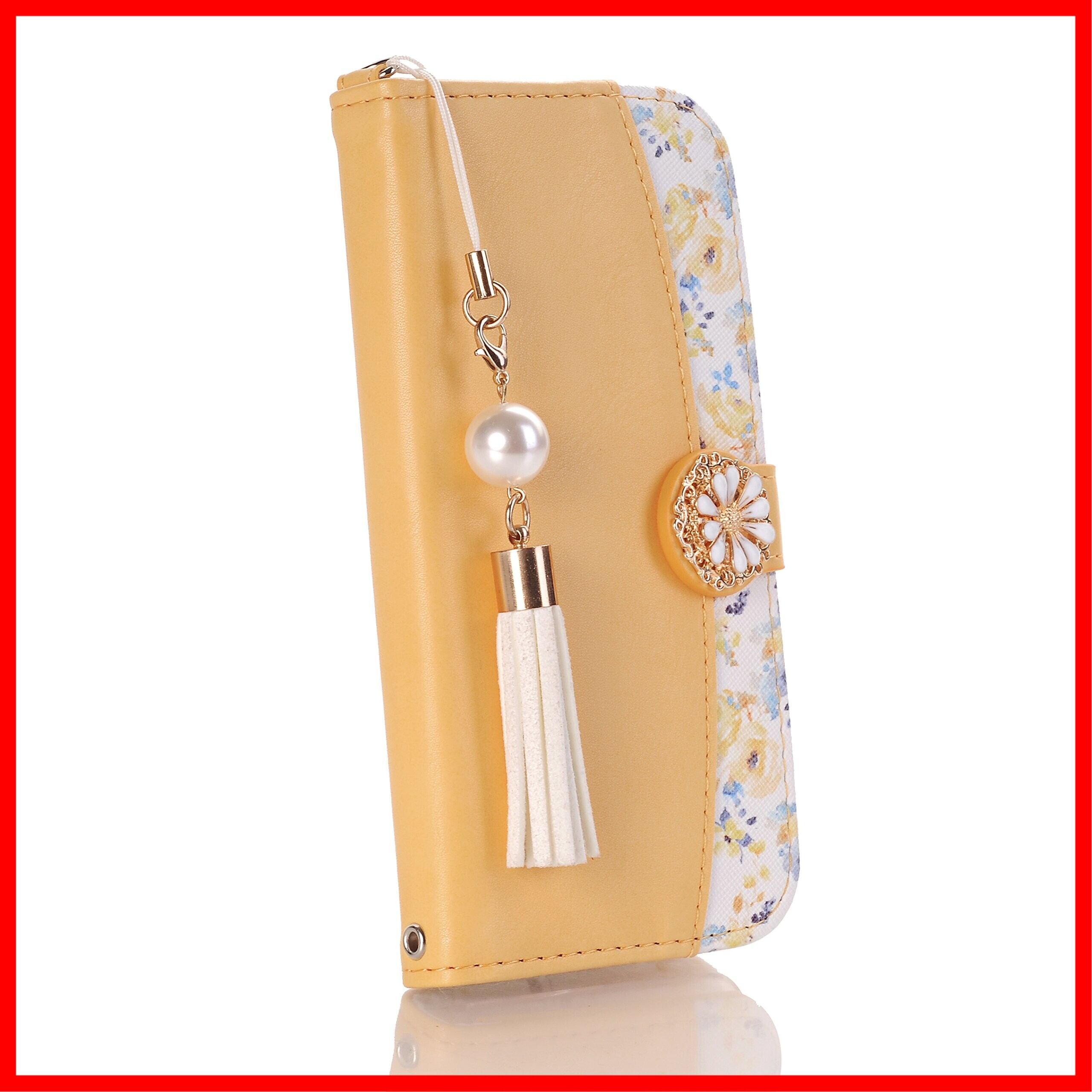 らくらくスマートフォン me F-01L ケース カバー 富士通 スマートフォン スマホケース 手帳型ケース かわいい花柄 スマホケース 可愛いタッセル ストラップ付き マグネット式 財布型 エレガント キラキラ 横置きスタンド機能付き カードポケット付き スマートフォンケース 耐衝撃 保護ケース 綺麗 少女 レディース用 おしゃれ 全面保護 (らくらくスマートフォン me F-01L, G5-黄色い)