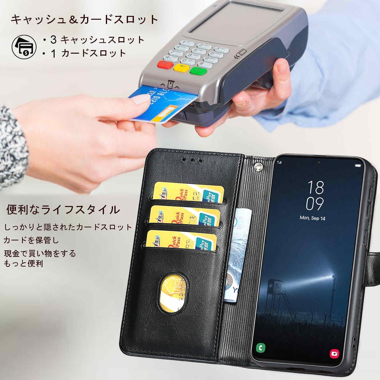 【カード収納】内側には3つのカードスロットと1つのキャッシュポケットがあります、名刺や定期券の収納に優れォン ケースです。普段の生活に便利をもたらします。