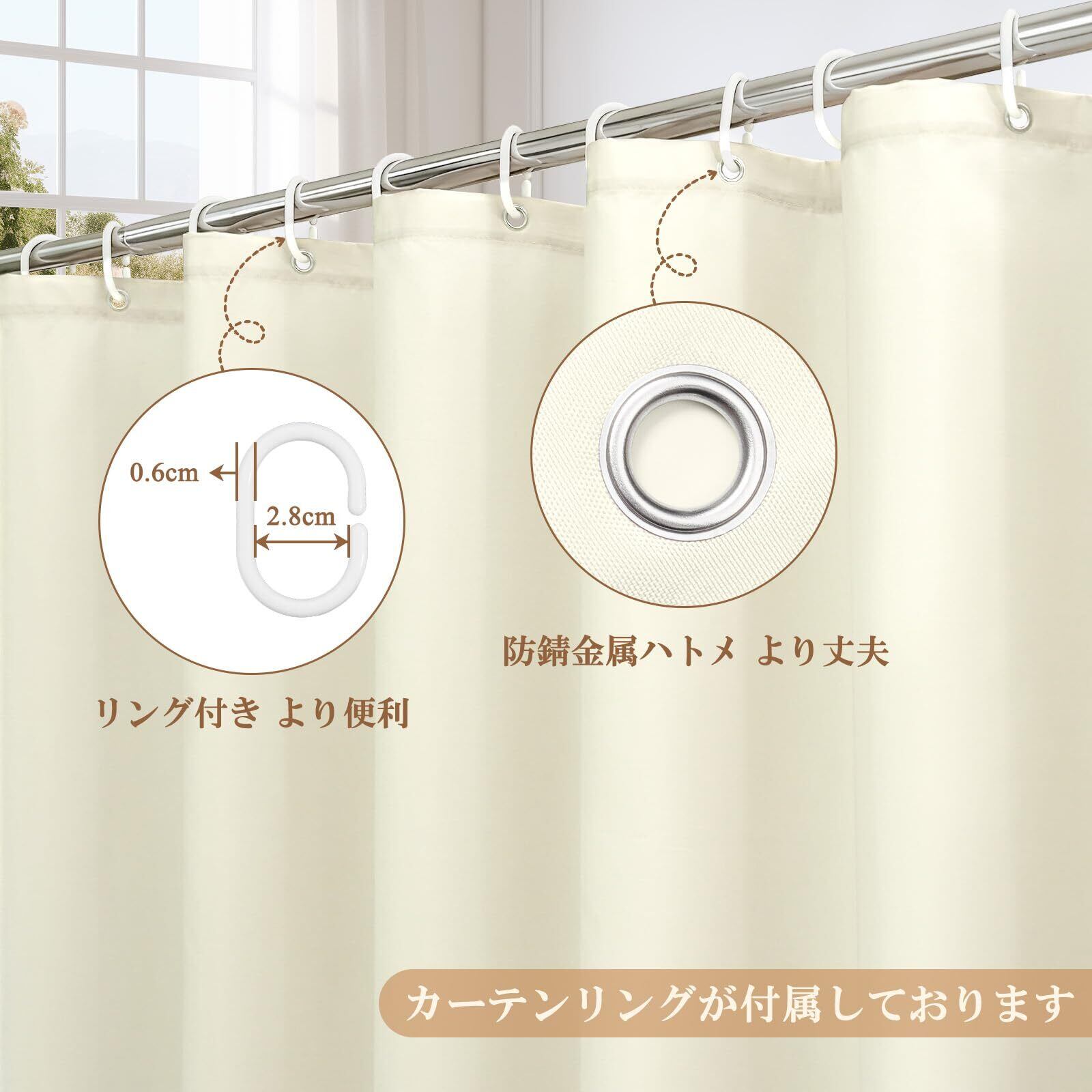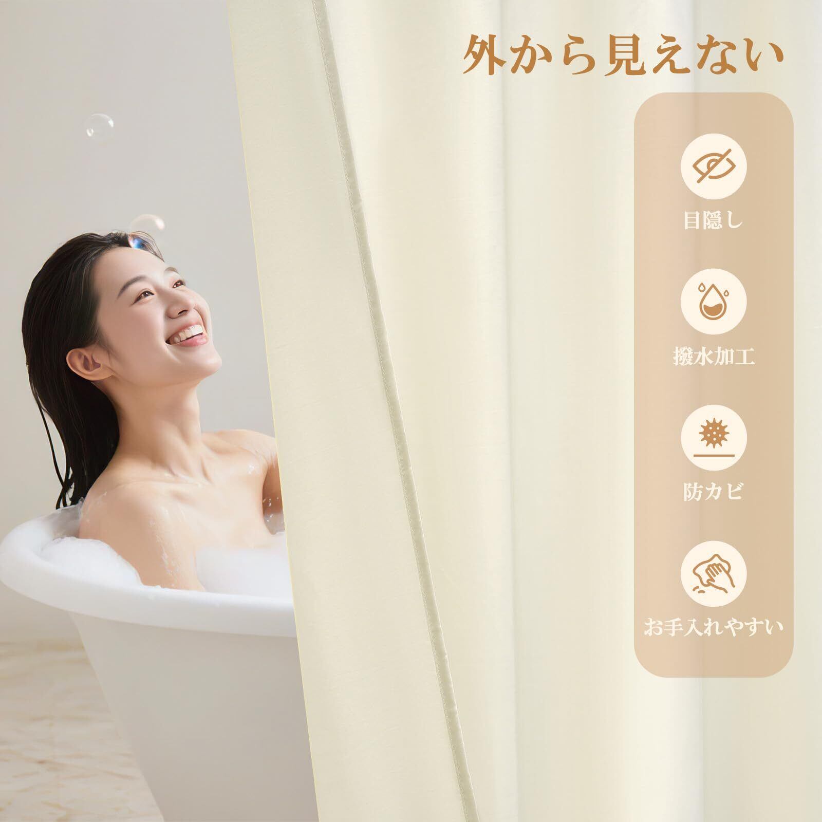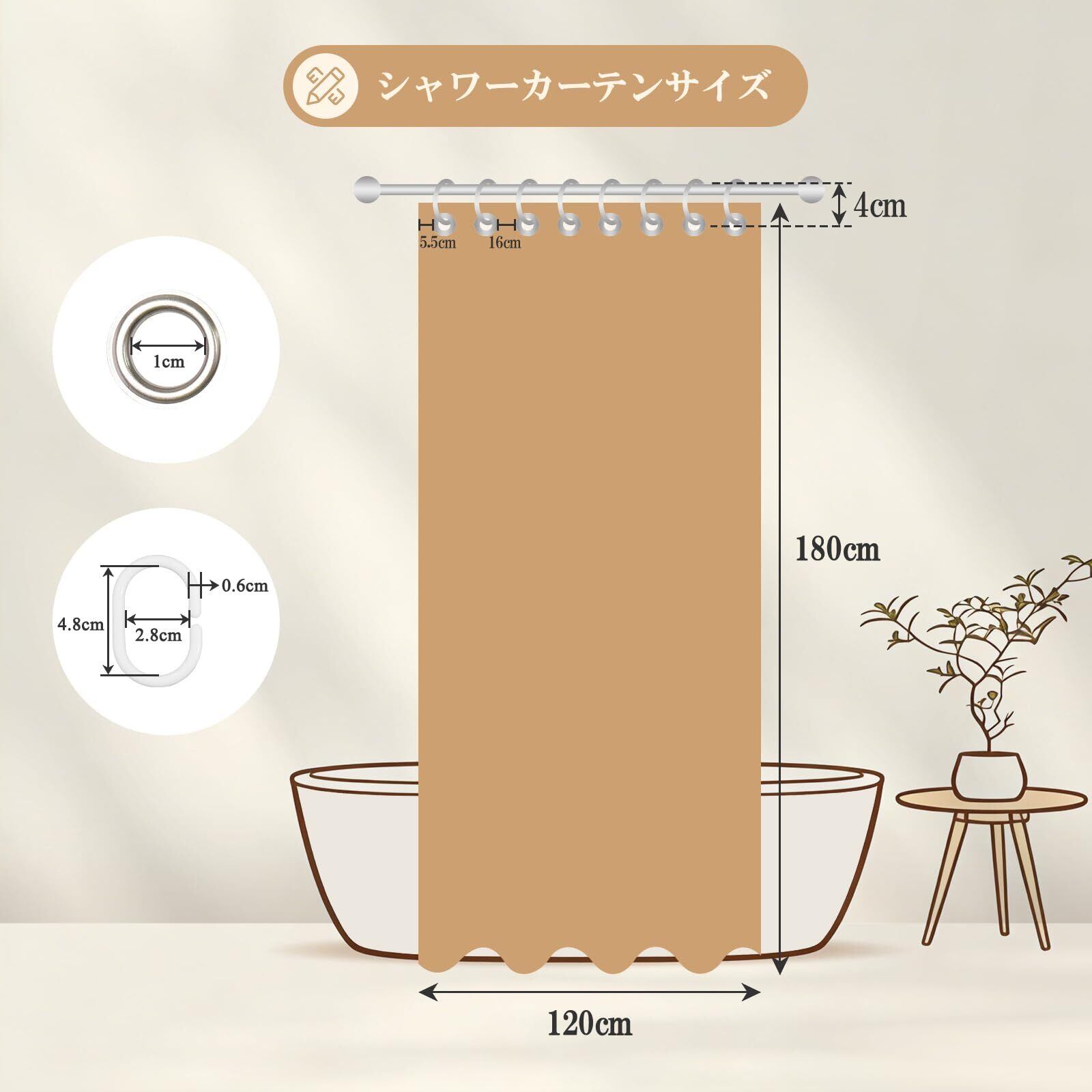 AooHome シャワーカーテン 丈180cm 目隠し 遮像 防カビ 防水 お風呂用カーテン 軽量 速乾 リング付き 無地 ベージュ 120x180cm