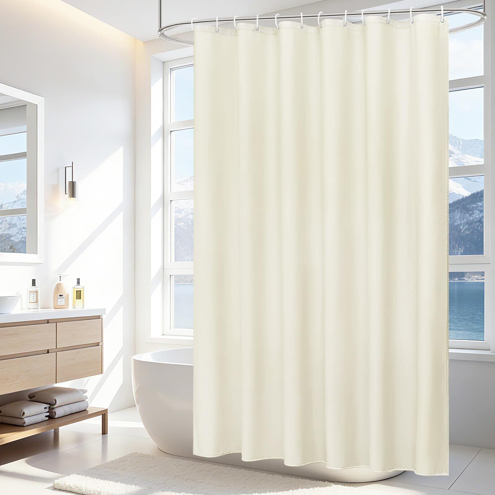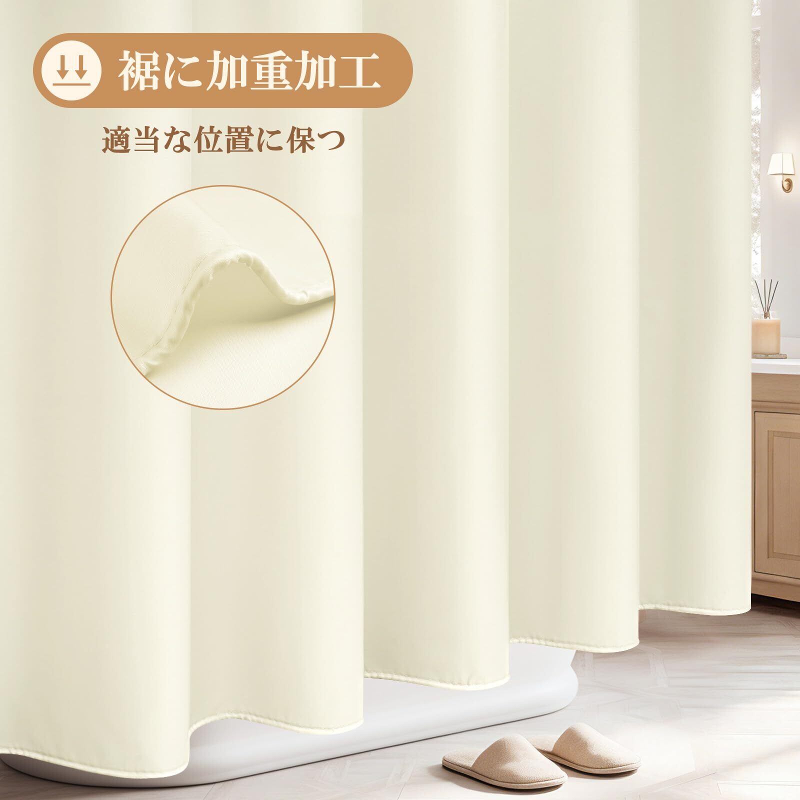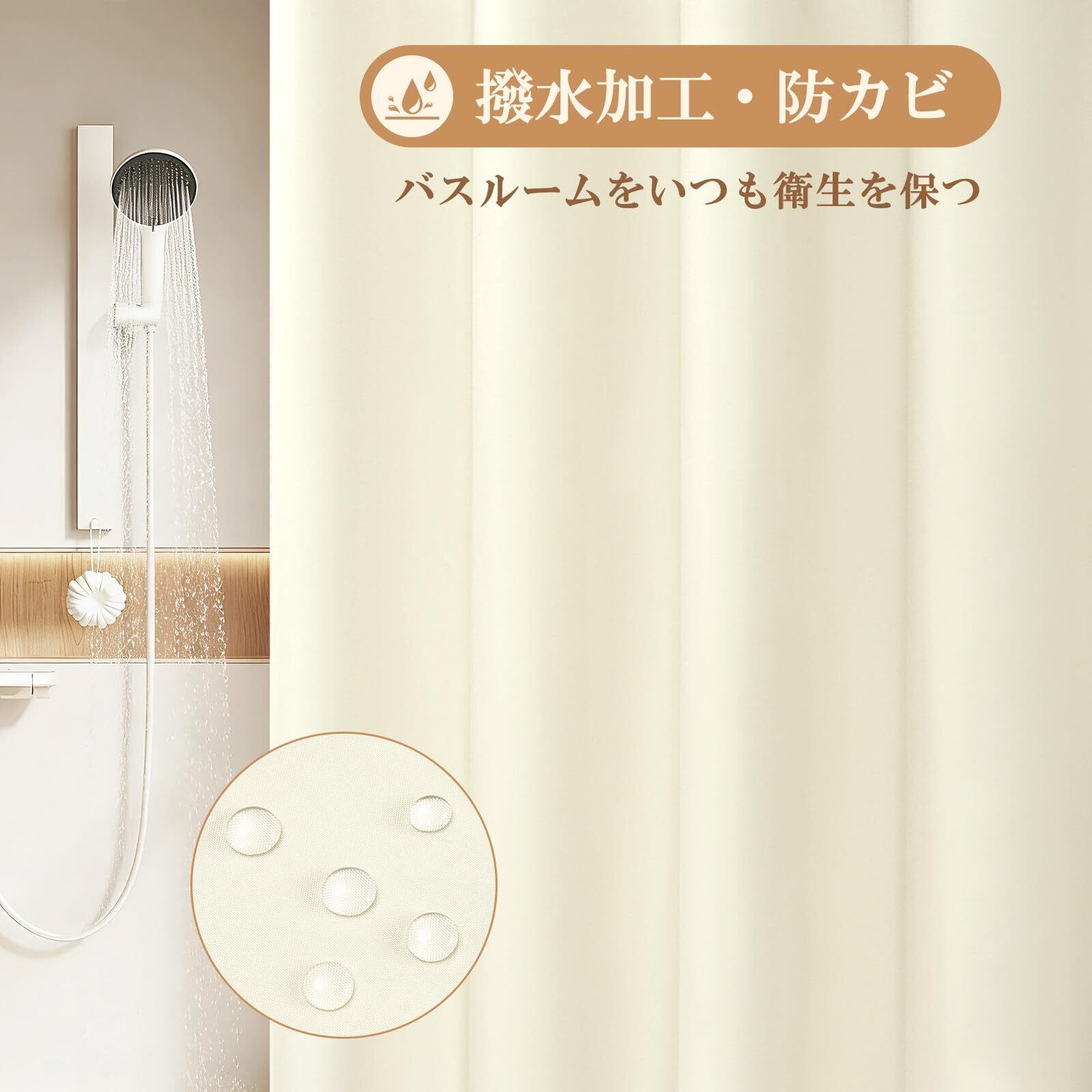 AooHome シャワーカーテン 丈180cm 目隠し 遮像 防カビ 防水 お風呂用カーテン 軽量 速乾 リング付き 無地 ベージュ 120x180cm