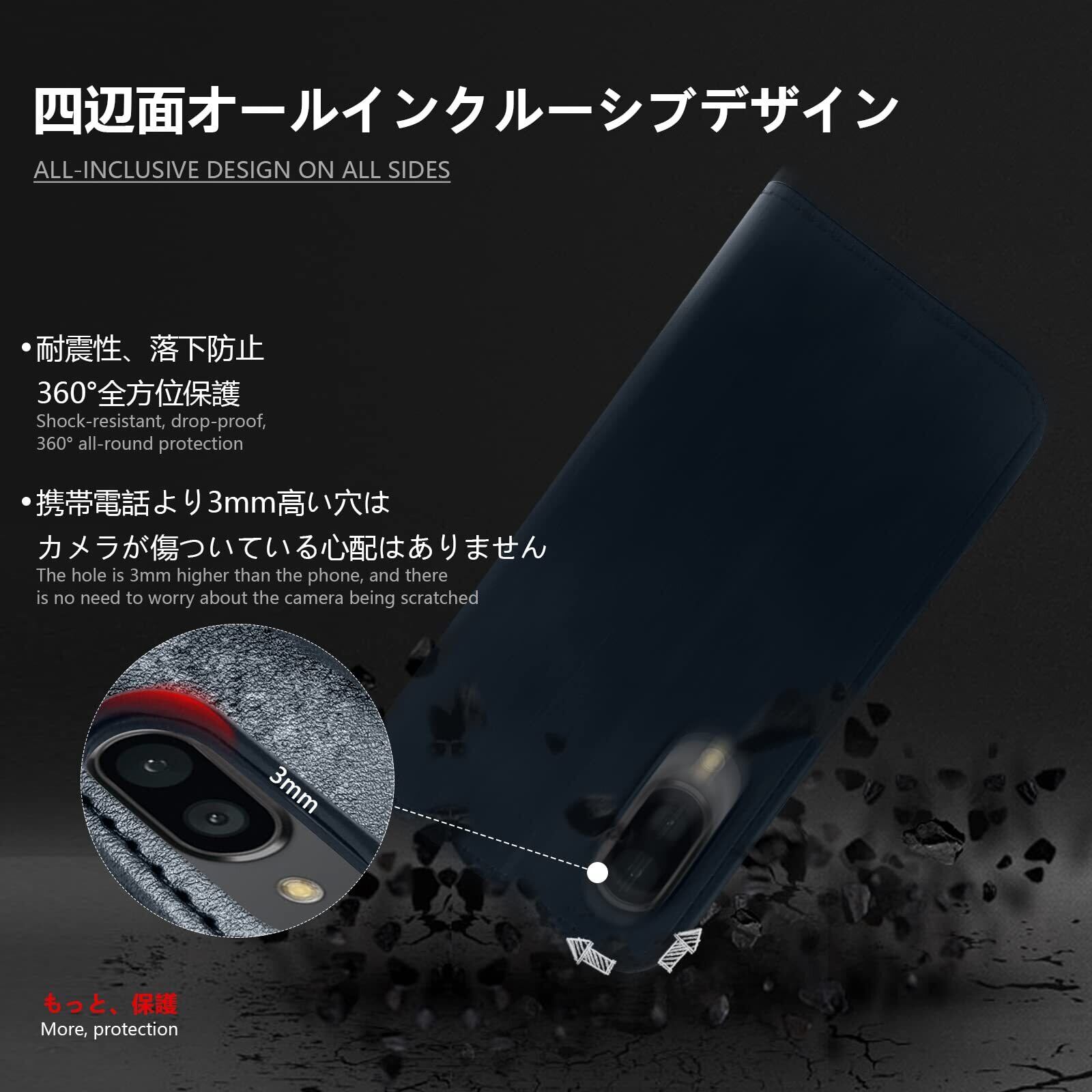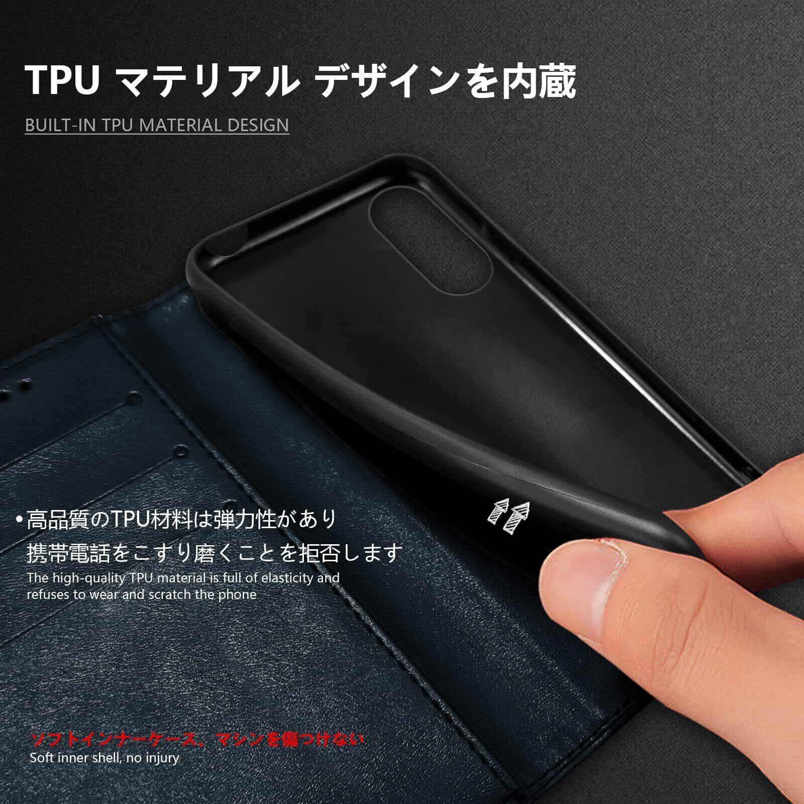 【衝撃吸収】手帳型ケースの四隅にラウンド処理がされており, 撃に強く、日常生活での消耗に耐えしっかり保護できるので、360°全方位からスマホを保護してくれます、落下や衝撃による損傷を軽減します。耐久性に優れた。高耐衝撃構造で作られ、熟練の技術に裏付けられたクッション加工、落下衝撃を全方位吸収し、期待に裏切らない頑丈さを持つ。落下の衝撃から重要なスマホを守ってくれます。安定することで、スマホの操作性も優秀です。