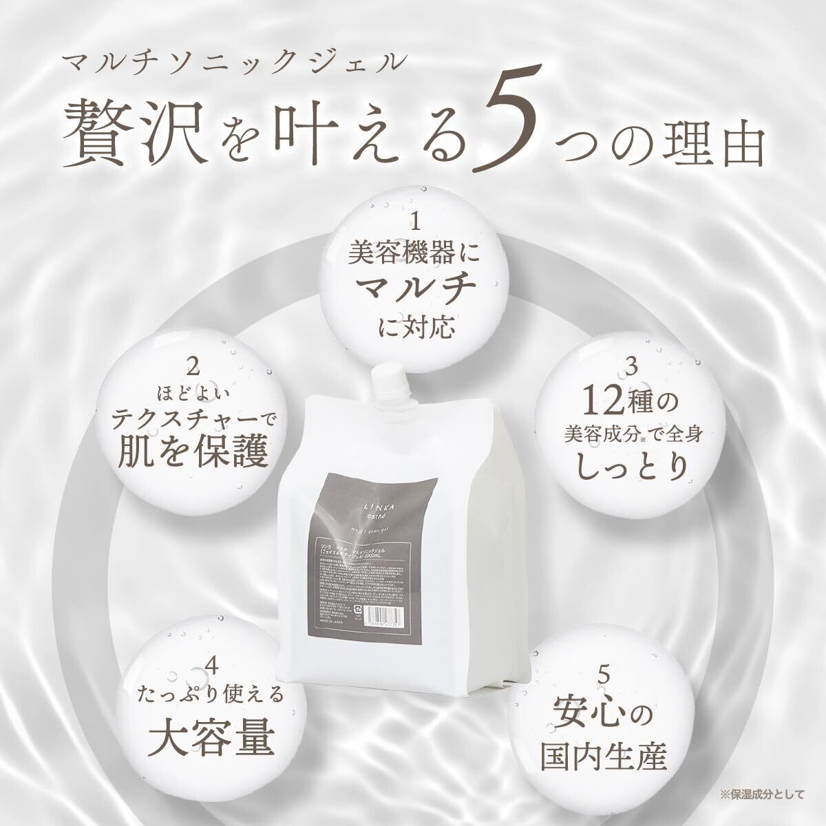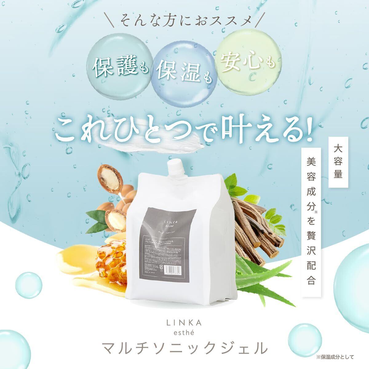 LINKA esthe (リンカ エステ) マルチソニックジェル 美顔器用 大容量 2kg 超音波ジェル 脱毛 CICA ツボクサ ヒアルロン酸 美容成分配合 キャビテーション 日本産 エステ サロン