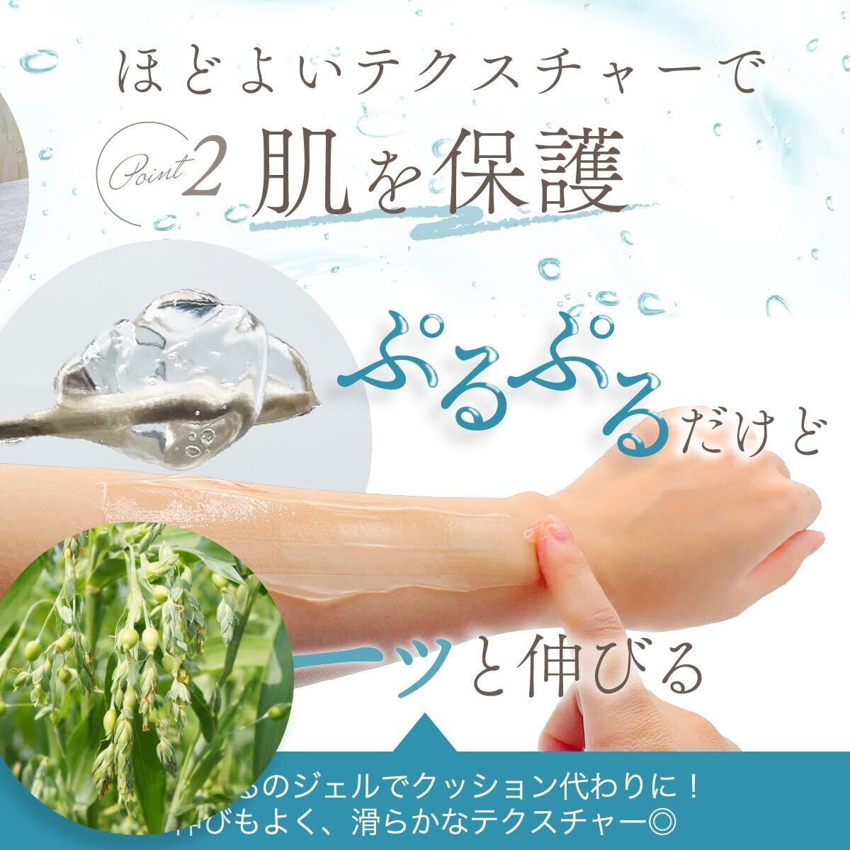 アロエベラ葉エキス・ツボクサエキス・ハトムギ種子エキス・キハダ樹皮エキスなどの植物由来成分を配合しており、ぷるぷるとしたなめらかなテクスチャーで肌なじみがよく、美容機器の使用時に心地よくお使いいただけます。
