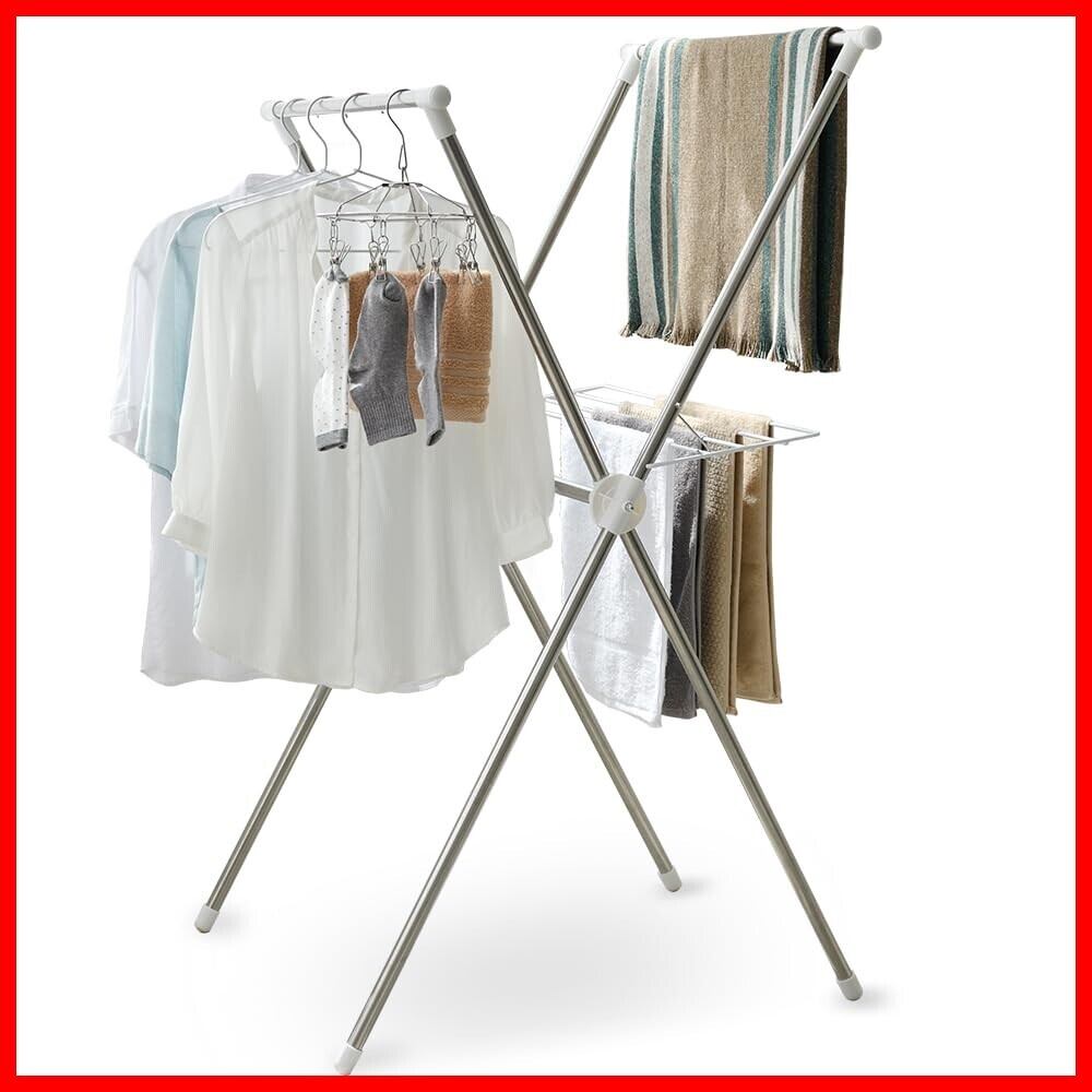 アイリスオーヤマ 組み立て簡単 ふとんも干せるタオルハンガー付きコンパクト洗濯物干し 約2人分 幅約70×奥行約78×高さ約130cm ステンレス製 H-70XN