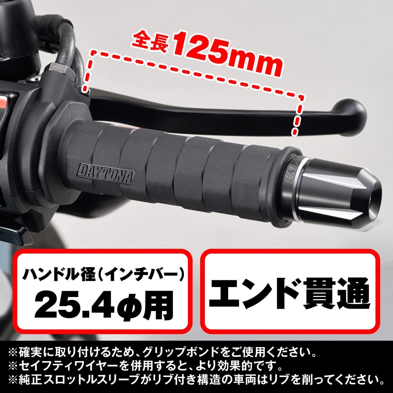 デイトナ(Daytona) バイク グリップ ハンドル径φ25.4(インチバー)用 125mm エンド貫通 グリッピーグリップ GG-DI-OCTA ブラック 15588