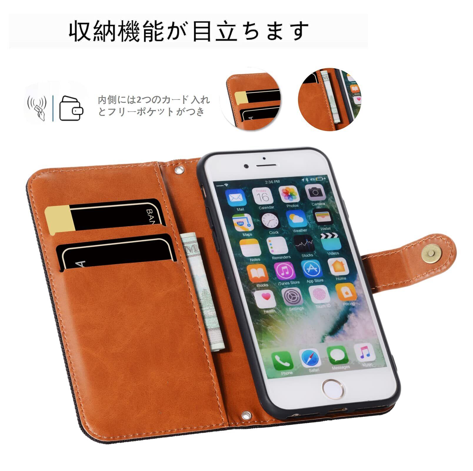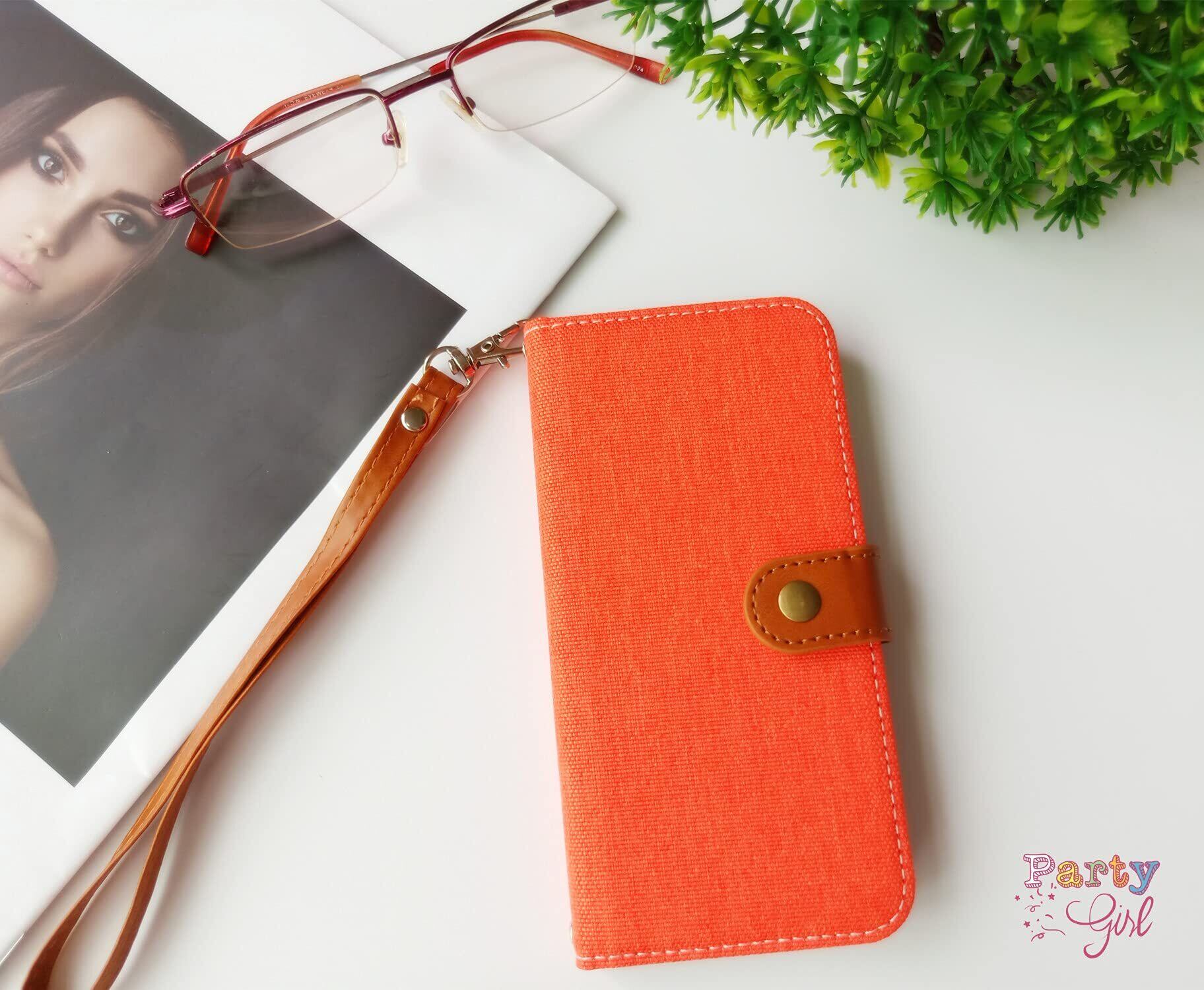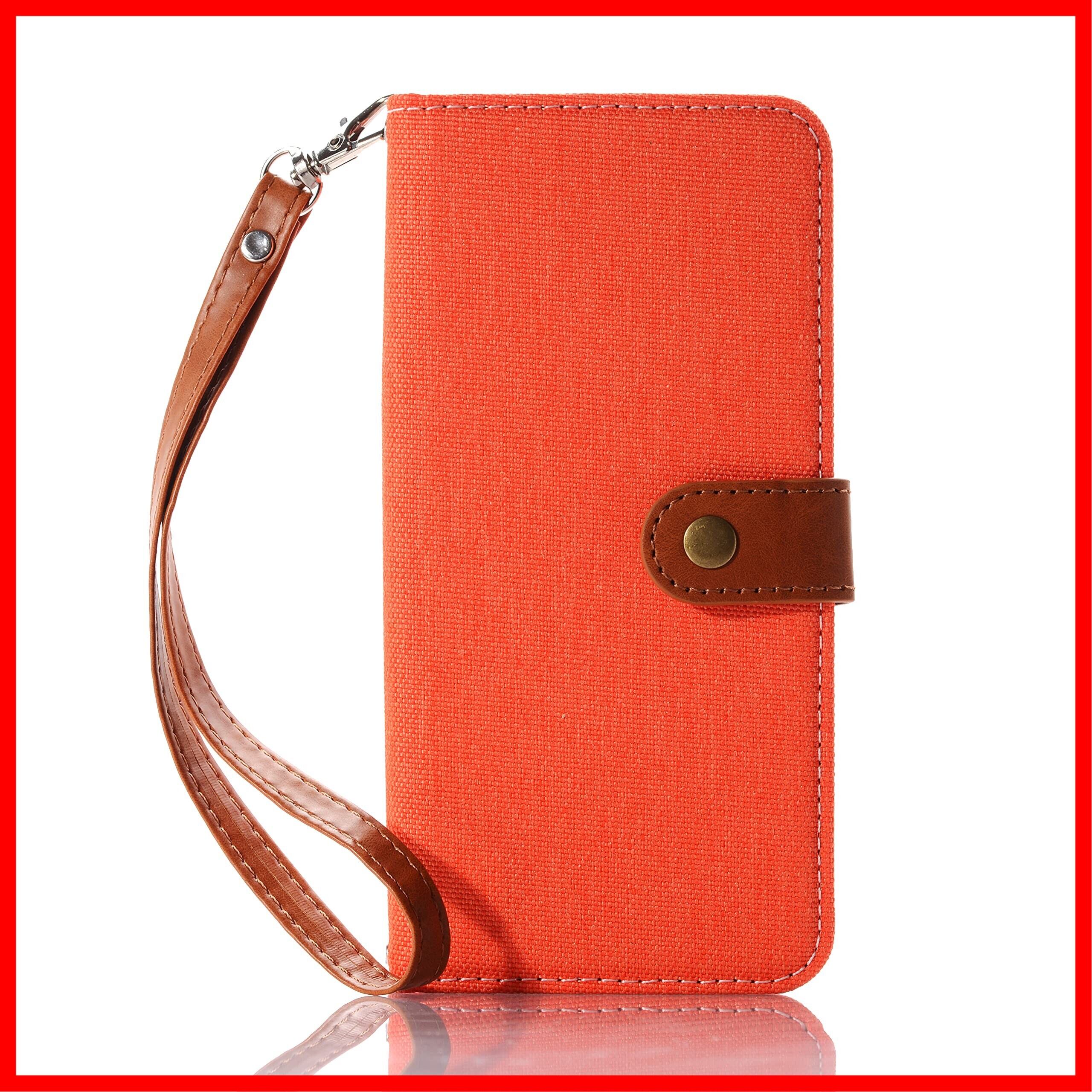 iPhone SE (第2世代/第3世代) 適用のケース手帳型 iphone8/iphone7 適用の手帳型 ケースカード入れ収納 スタンド機能 マグネット式 財布型手帳型ストラップ付 デニムケース アイフォンse2/se3/ スマホケース オレンジ