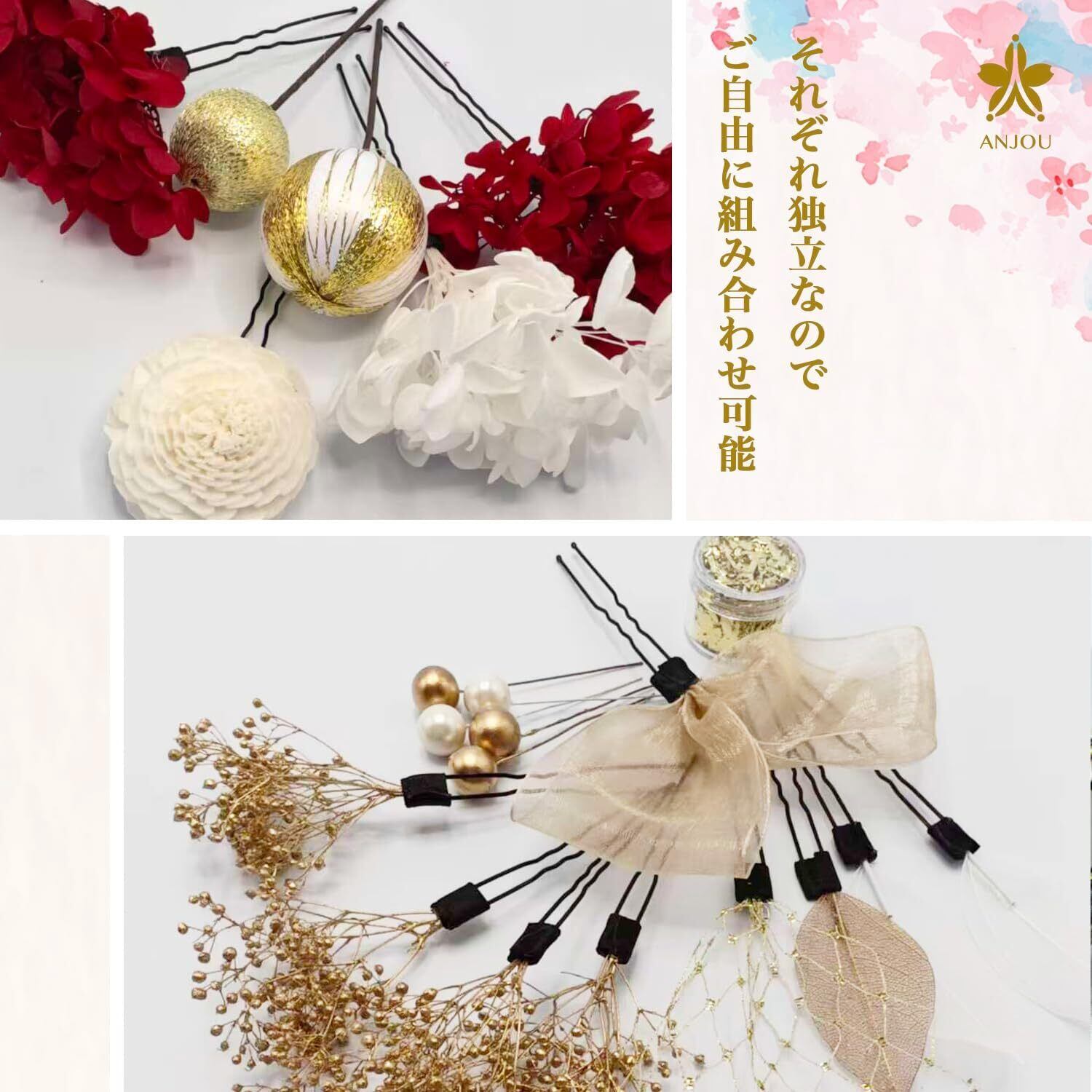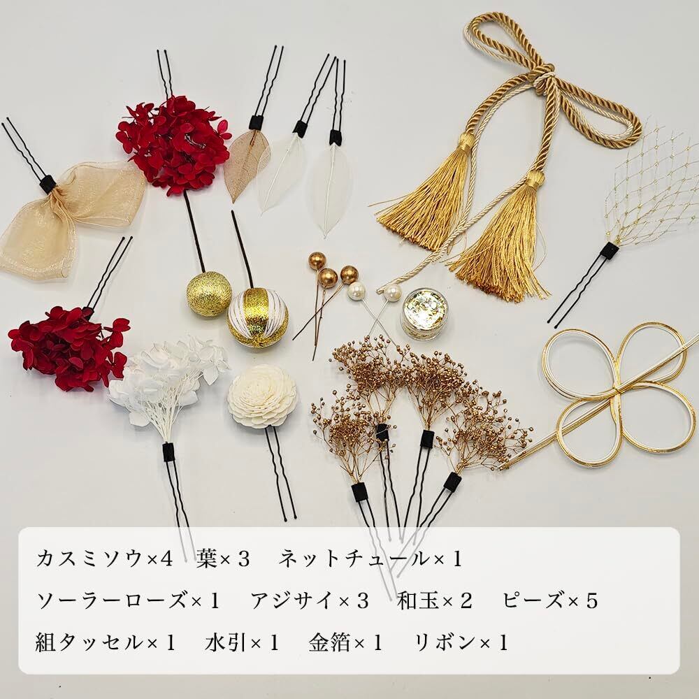 【豪華なセット内容】この商品は12点セットです。綺麗な髪飾りになる必要なものが全部揃えています。お客様は自分の好みでご自由にマッチしてください。