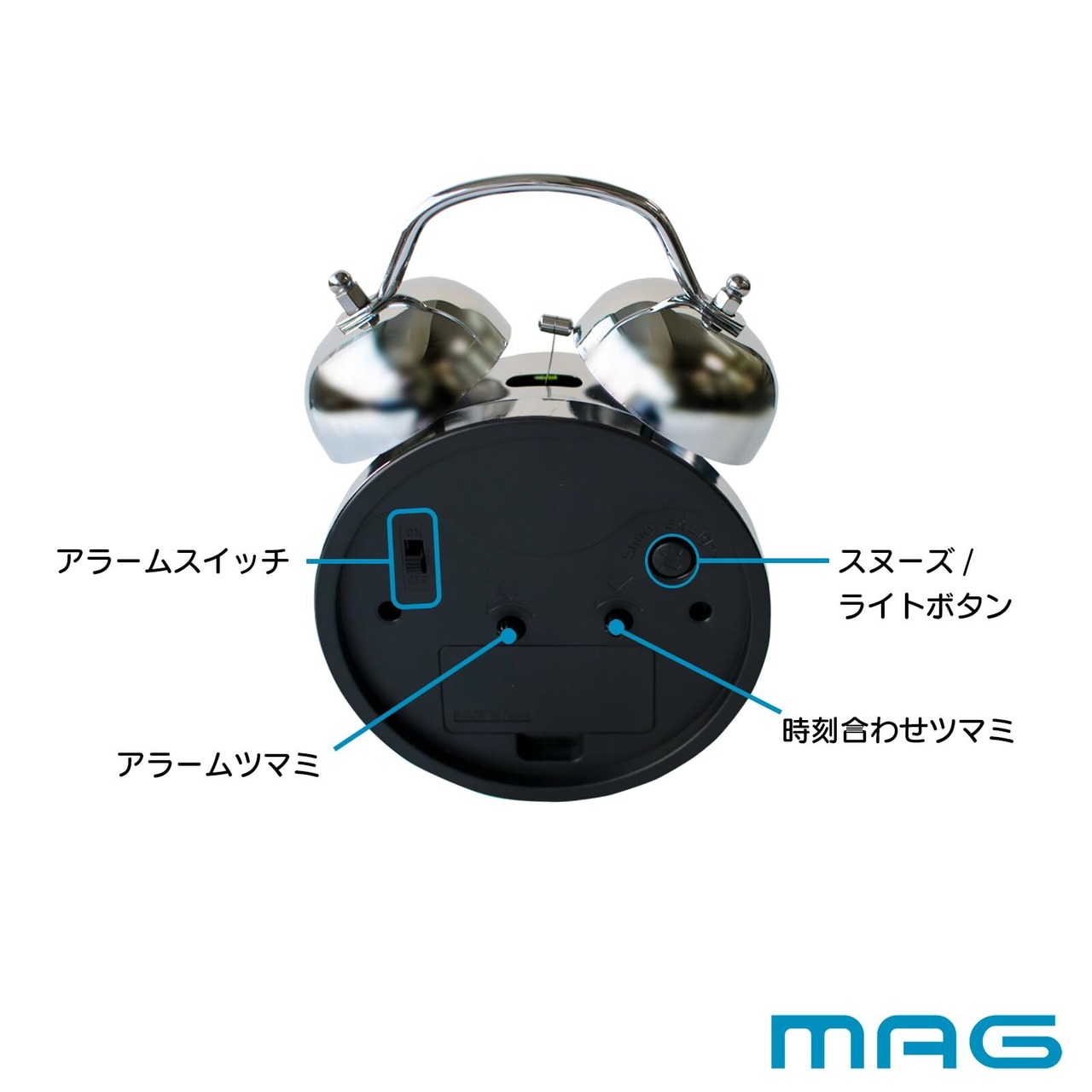 MAG(マグ) 目覚まし時計 置き時計 大音量 ツインベル アナログ 見やすい 静音 連続秒針 ベル音 アラーム スヌーズ ライト シルバー ベルズDX T-764 S-Z ノア精密