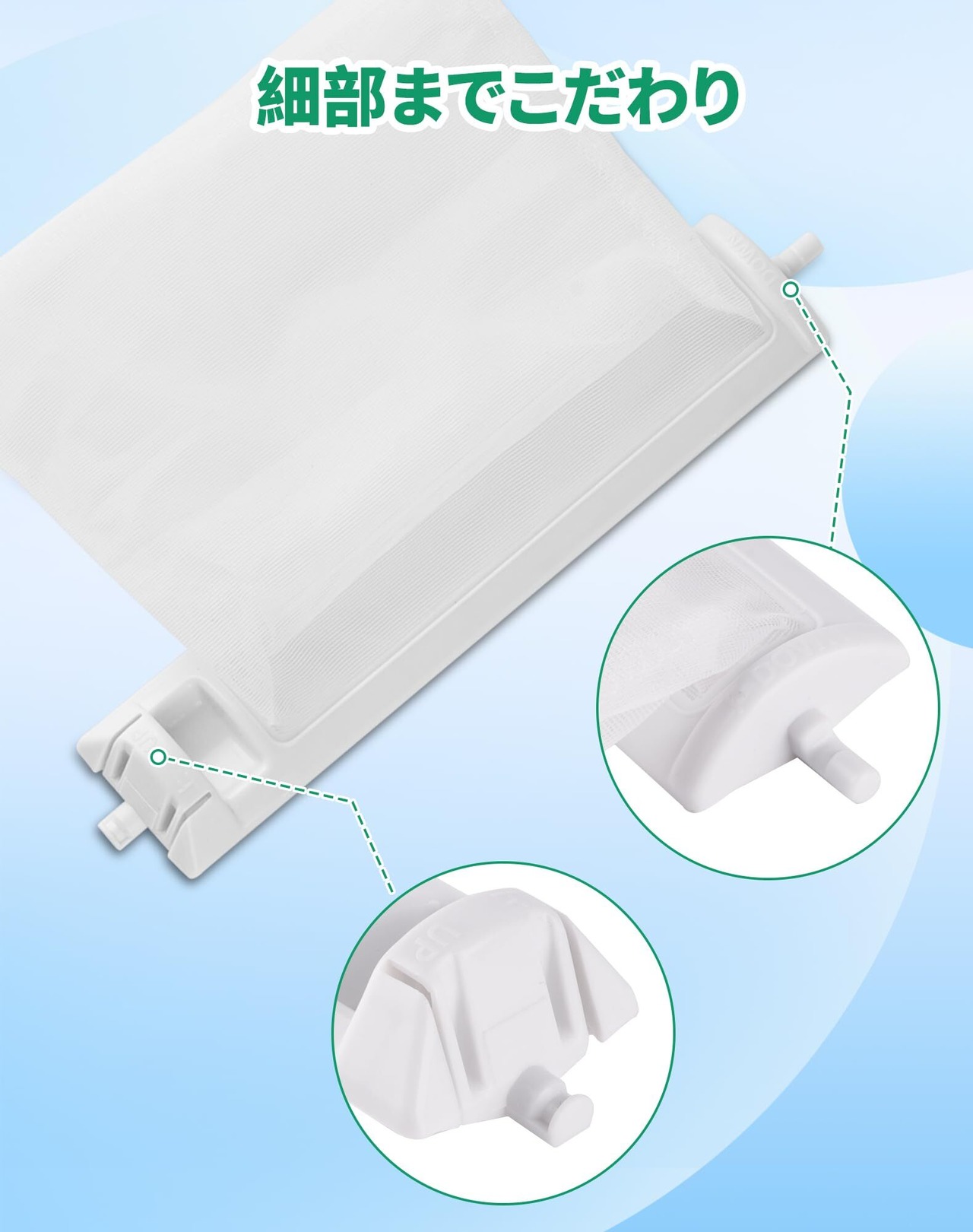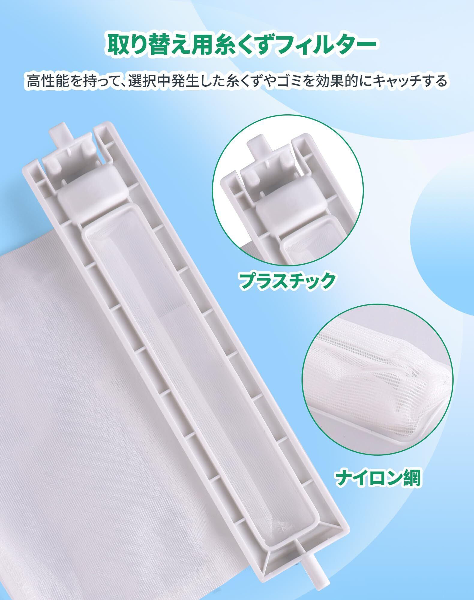 【お手入れと交換】適当な頻度で糸くずフィルターのお手入れが必要で、または糸くずフィルターは消耗品ですので、洗っても汚れが落ちない時や壊れる場合に新品に交換してください。【注意事項】この製品はゴミ取りネット 交換用フィルターであり、純正品ではありませんが、同等にご利用いただけます。また、ご注文の際は、上記の対応型番と、お使いの洗濯機の機種、糸くずフィルターの形状や大きさをご確認の上、ご購入ください。