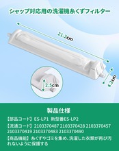【製品情報】ES-LP1 ES-LP2 洗濯機くず取りフィルターです。 流通コード:210-337-0487、210-337-0428、210-337-0457、210-337-0419 、210-337-0483、210-337-0490 入り数:2個入り サイズ:約21.2×4.2×2.46cm ※ご自宅の洗濯機内のフィルターの寸法と形状を十分ご確認した上でご購入して下さい。