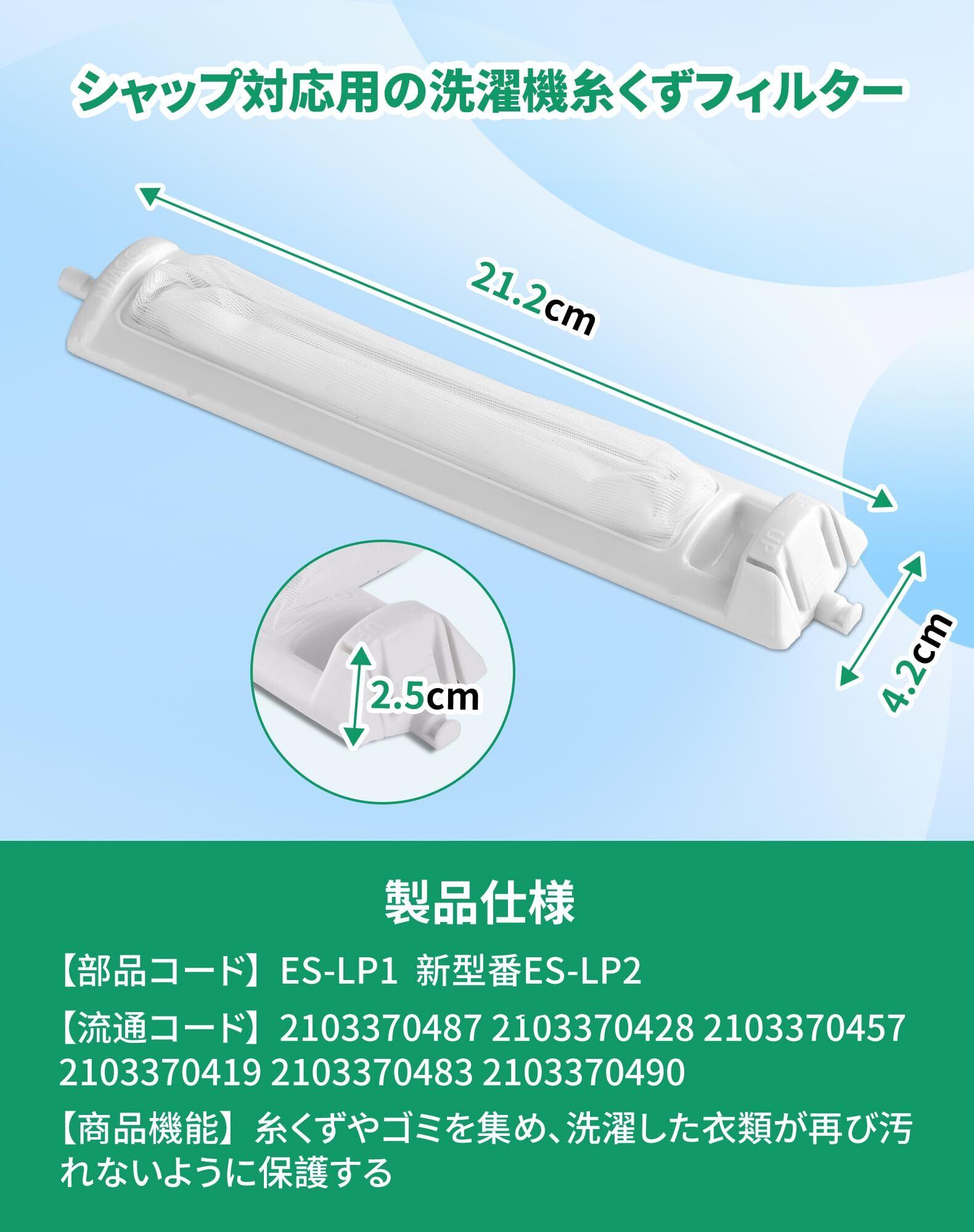 【家庭に欠かせない必需品】本製品はes-lp1 糸くずフィルター 純正交換用の同等品です。造り構造は、洗純正品と比較して、明らかにシンプル、取り付けも簡単です。 糸くずや髪の毛、ペットの毛などを効果的にキャッチし、洗濯物を清潔に保ち、溜まった糸ゴミ等を取る時に、縫い目に絡んだりしません、洗濯機のドラムや排水口への負担を軽減し、寿命を延ばします。