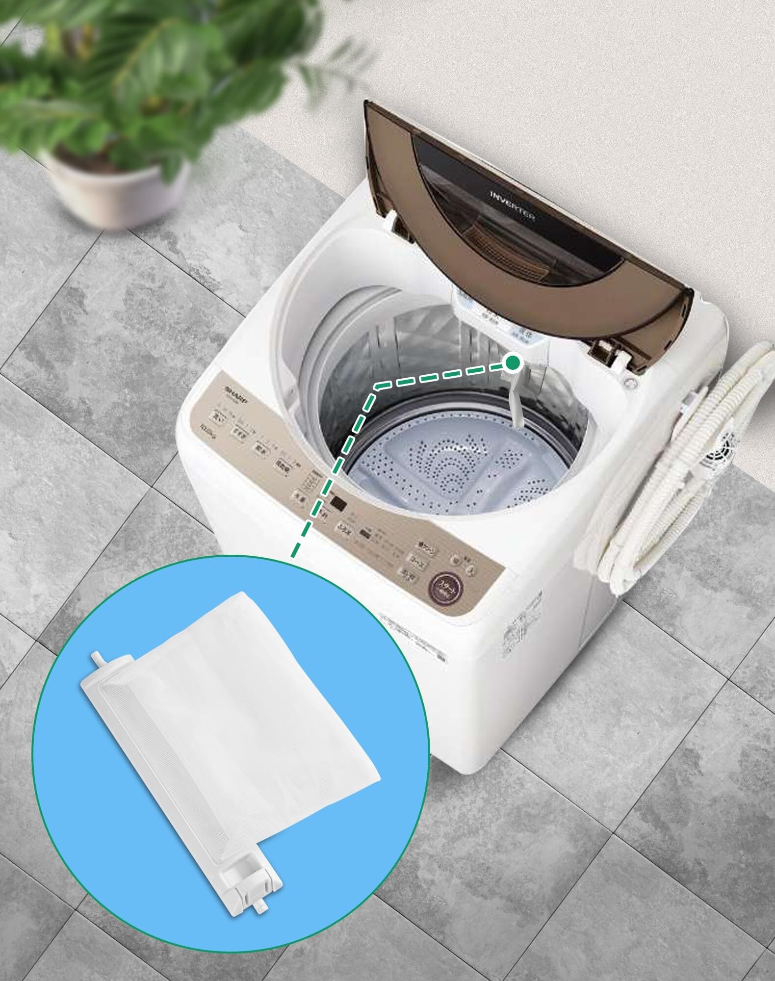 【洗濯機寿命延長】洗濯物をきれいに保つために、洗濯機の使用頻度によって、洗濯機の糸くずフィルターは、少なくとも1週間を目安に定期的に洗濯してください。定期的にフィルターの掃除を行い、効果的なフィルタリングを維持してください。【取り替え方法】①糸くずフィルターの先端部を押して、洗濯機より外します。(取り出しにくい場合は、洗濯槽脱水槽を回して下さい)。②糸くずフィルターを綺麗に洗います。③綺麗になった糸くずフィルター或は新品を洗濯機に嵌める位置に合わせて差し込みます。