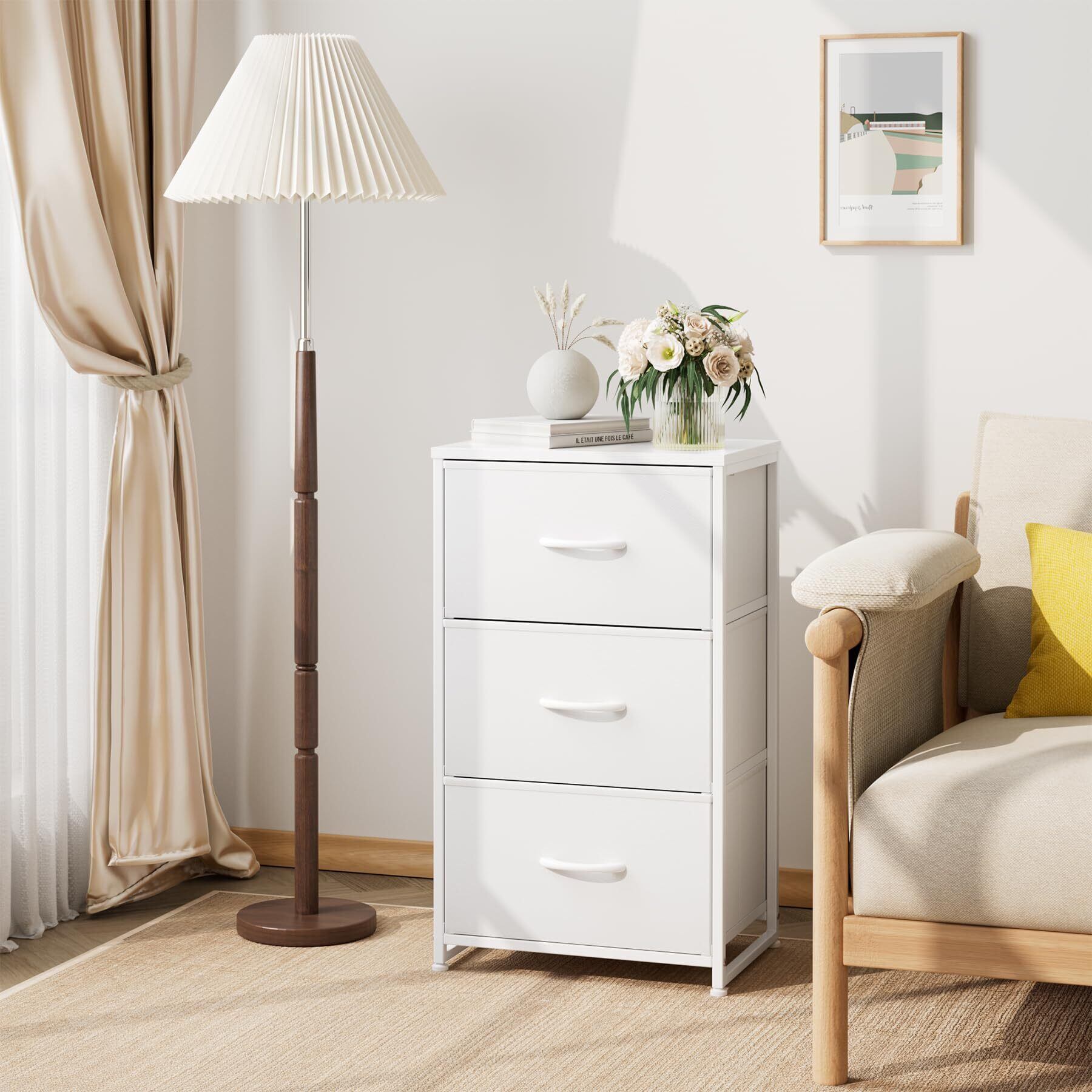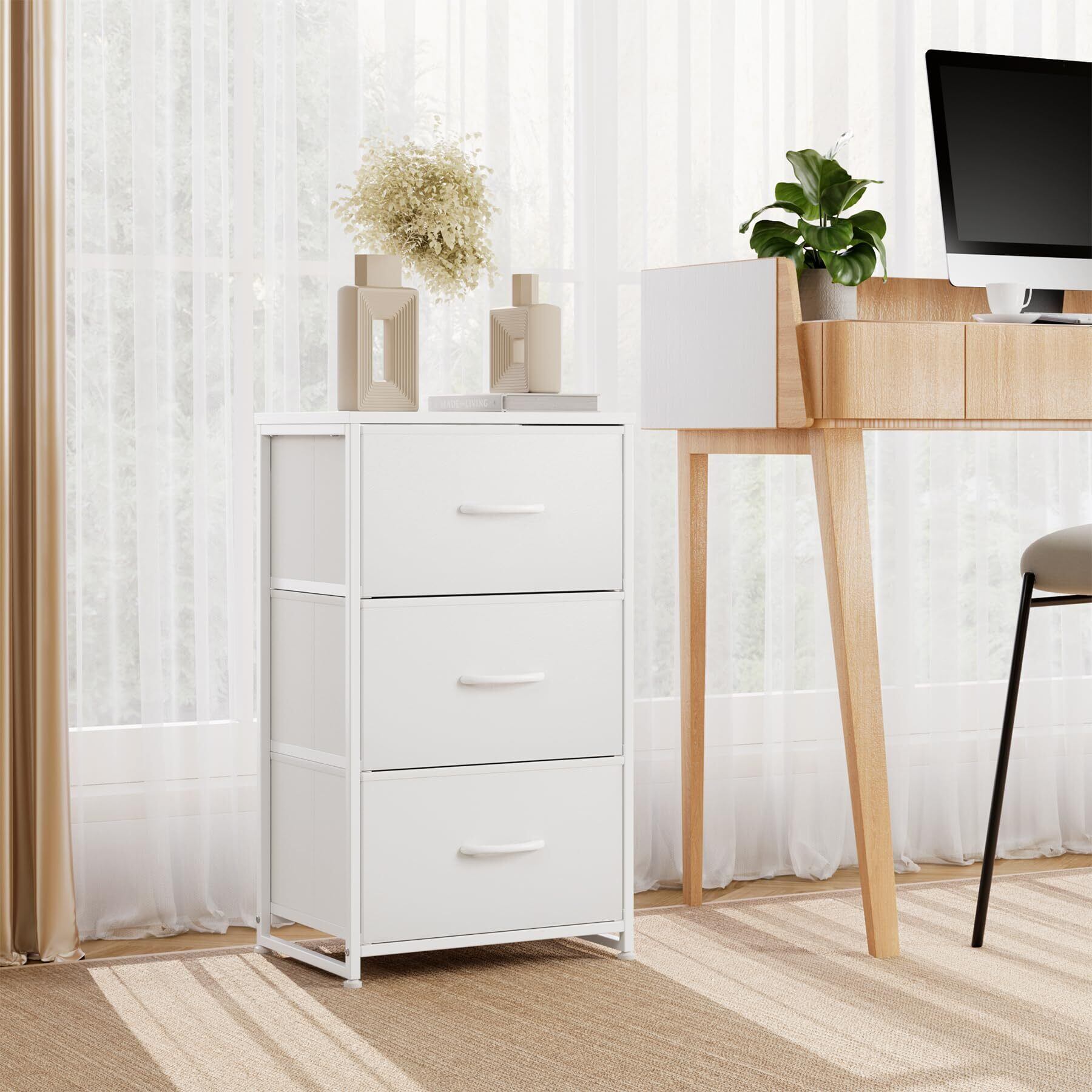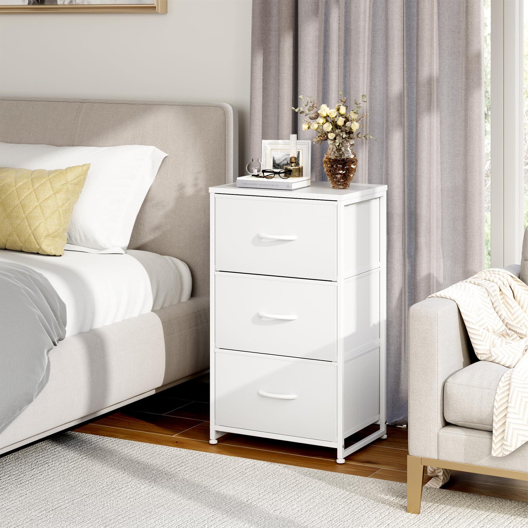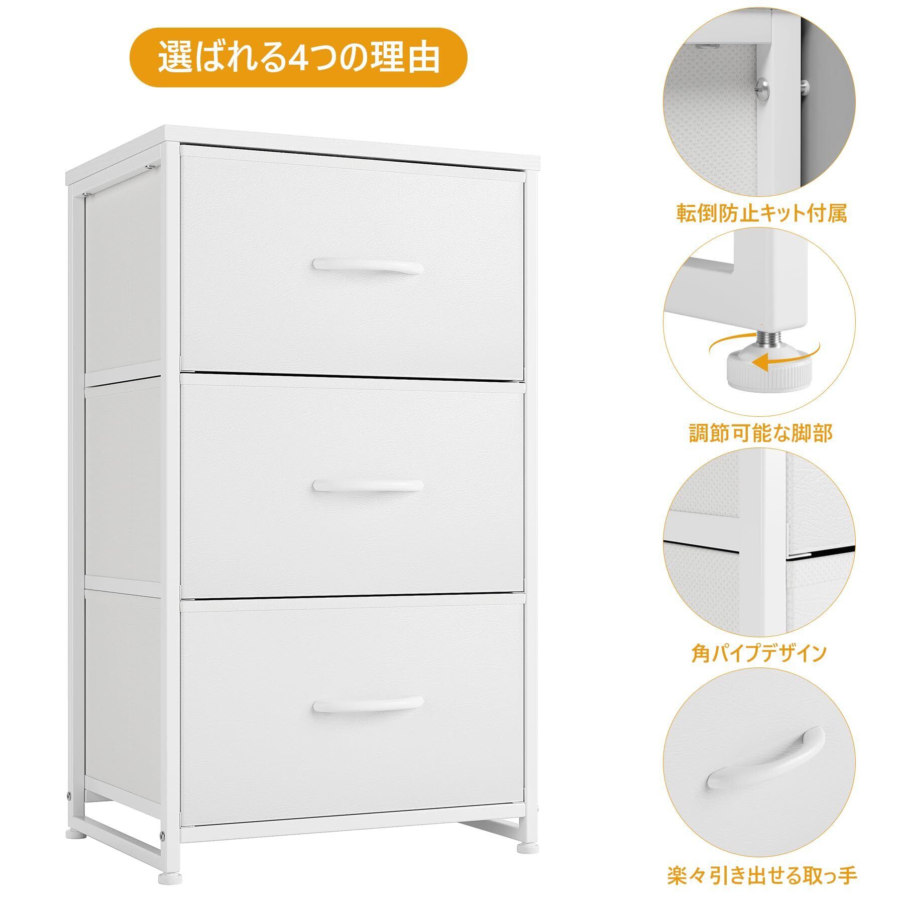 Nicehill チェスト 収納 タンス 引き出し オーガナイザー 収納ケース 衣類収納 木製天板 組立簡単 転倒防止 3段(幅40㎝ x 奥行き30㎝ x 高さ72.5㎝) (ホワイト)