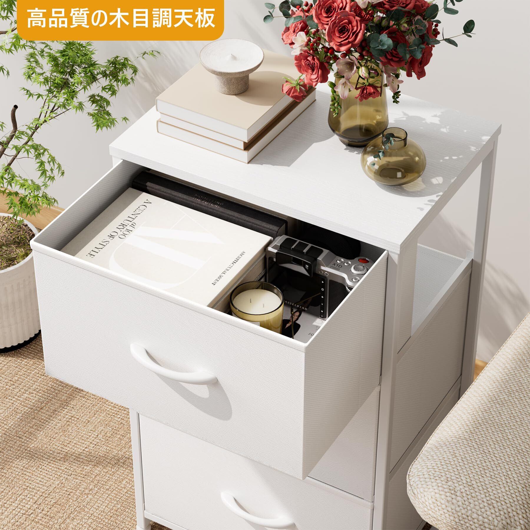 収納スペースたっぷり:コンパクトサイズでクローゼットにもぴったり収まります。一人暮らしでもご家族用にも適しています。衣類、タオル、ブランケット、靴下などのアクセサリーを収納したり、ランプ、目覚まし時計、花瓶などの小さな装飾品を木製テーブルに置いたりするなど、さまざまにご活用いただけます。