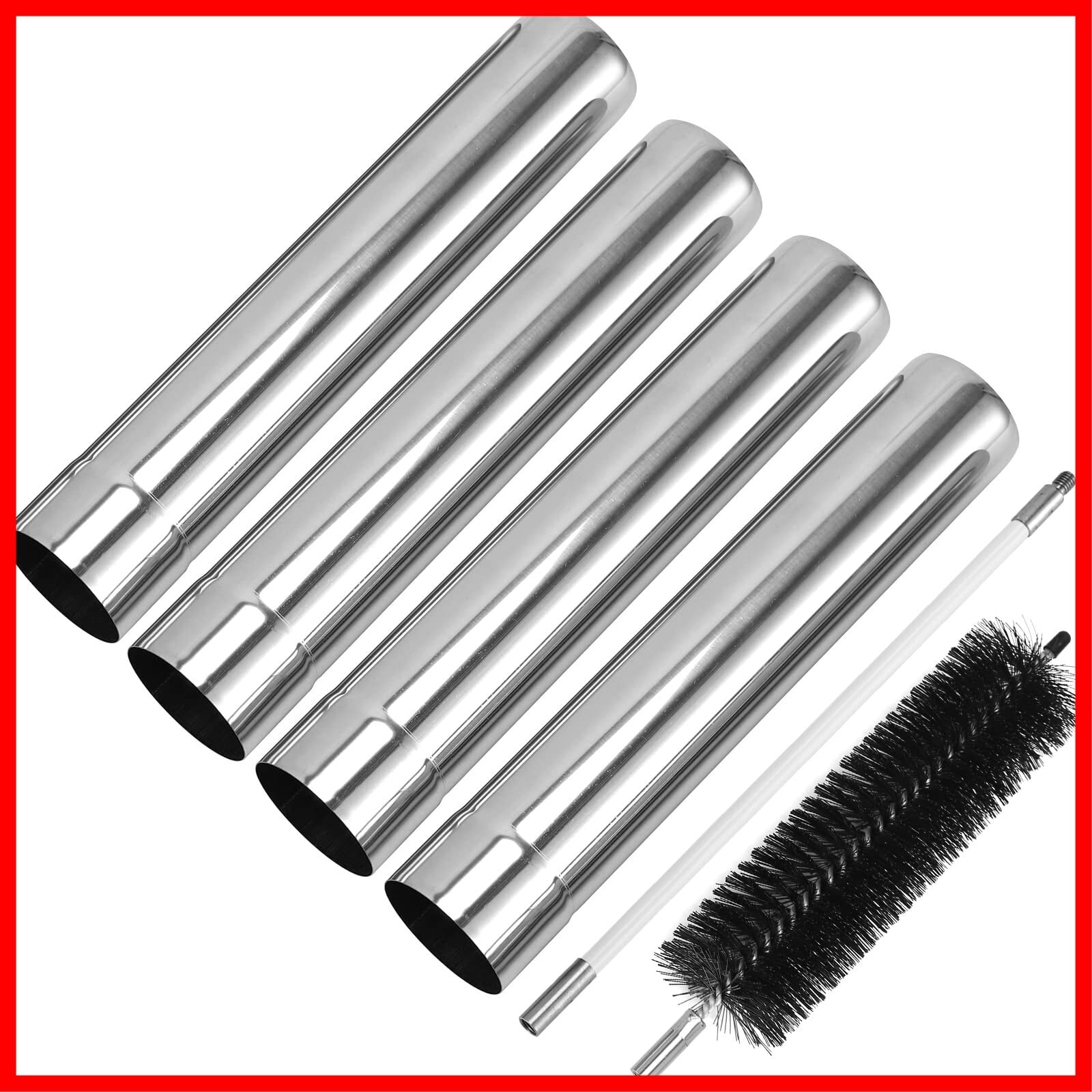 SENQI 延長煙突 煙突パイプ 薪ストーブ専用 32cm ステンレス製 別売りオプションパーツ 4本セット キャンプ用品 清掃用ブラシ付き
