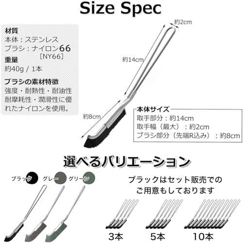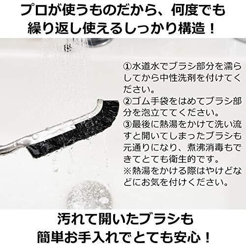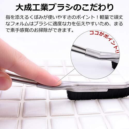 【大成工業ブラシのこだわりと特徴】✨本体はステンレス製でさびにくく丈夫な作りになっております。✨力を加えやすいように指ストッパーが付いており握りやすくなっています。✨細かい隙間や角にブラシの毛が届くように設計された、Jの字のようなカーブをした先端になっております。✨汚れを落としやすく、お掃除場所を傷つけにくい適度な硬さのナイロン毛「ナイロン66」(NY66)を使用しております。✨耐熱性があり、油汚れ等はお湯を使ってご使用いただくことが可能です。