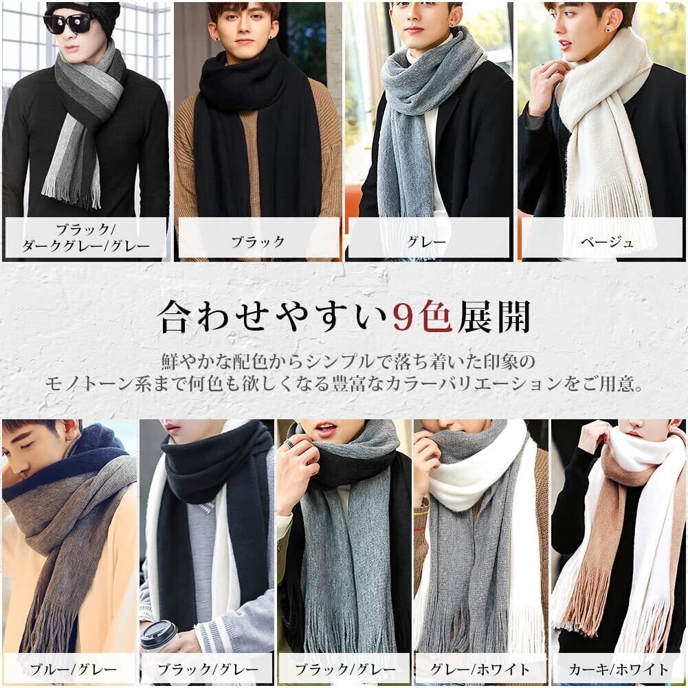 マフラー ストール メンズ 秋 冬 防寒 柔らかい肌触り・大判ストール・ショール・ストライプ・大きいサイズ シンプル カジュアル おしゃれ 暖かい 厚手 防風 プレゼント・ギフト・贈り物・誕生日・記念日・男女兼用 (ブラック/ダークグレー/グレー)
