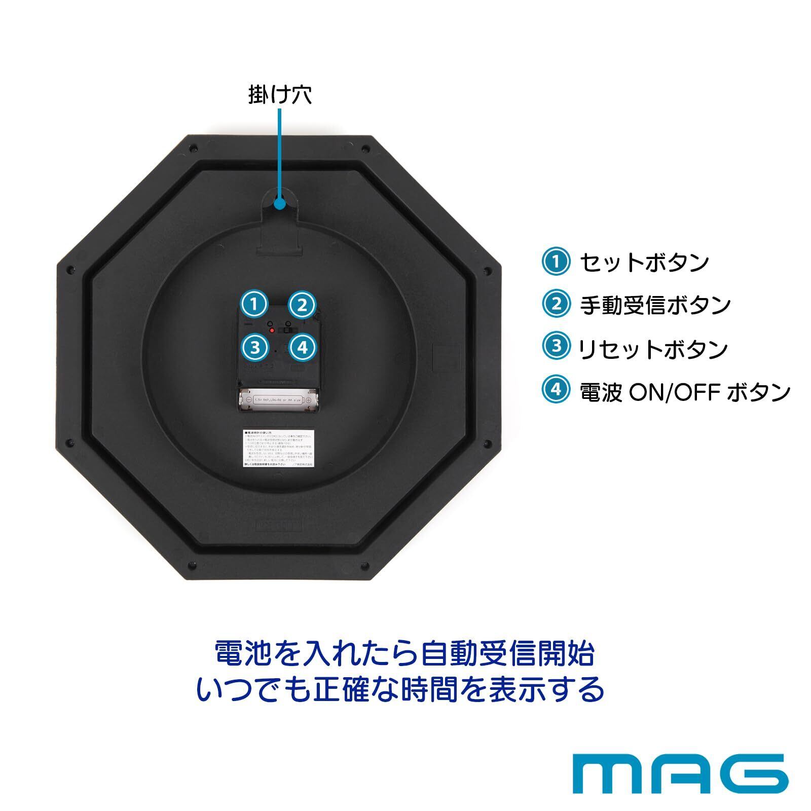 MAG(マグ) 掛け時計 壁掛け時計 アナログ 電波時計 電波受信ON/OFF 静音 連続秒針 約30.0×30.0㎝ 八角形 和室 木目調 ブラウン ネオオクターゴ W-739 BR-Z ノア精密