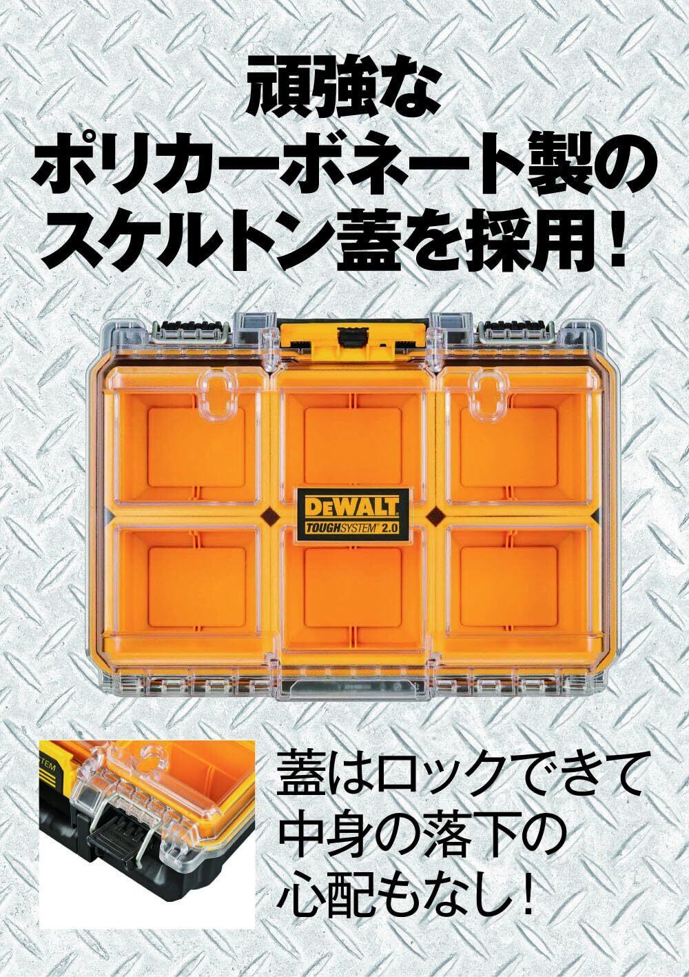 デウォルト(DEWALT) タフシステム2.0 ハーフサイズ オーガナイザー 工具箱 収納ケース ツールボックス 積み重ね収納 IP65 坊塵 防水 設計 ネジ ビット 小物 入れ Tough System 2.0 DWST83392-1