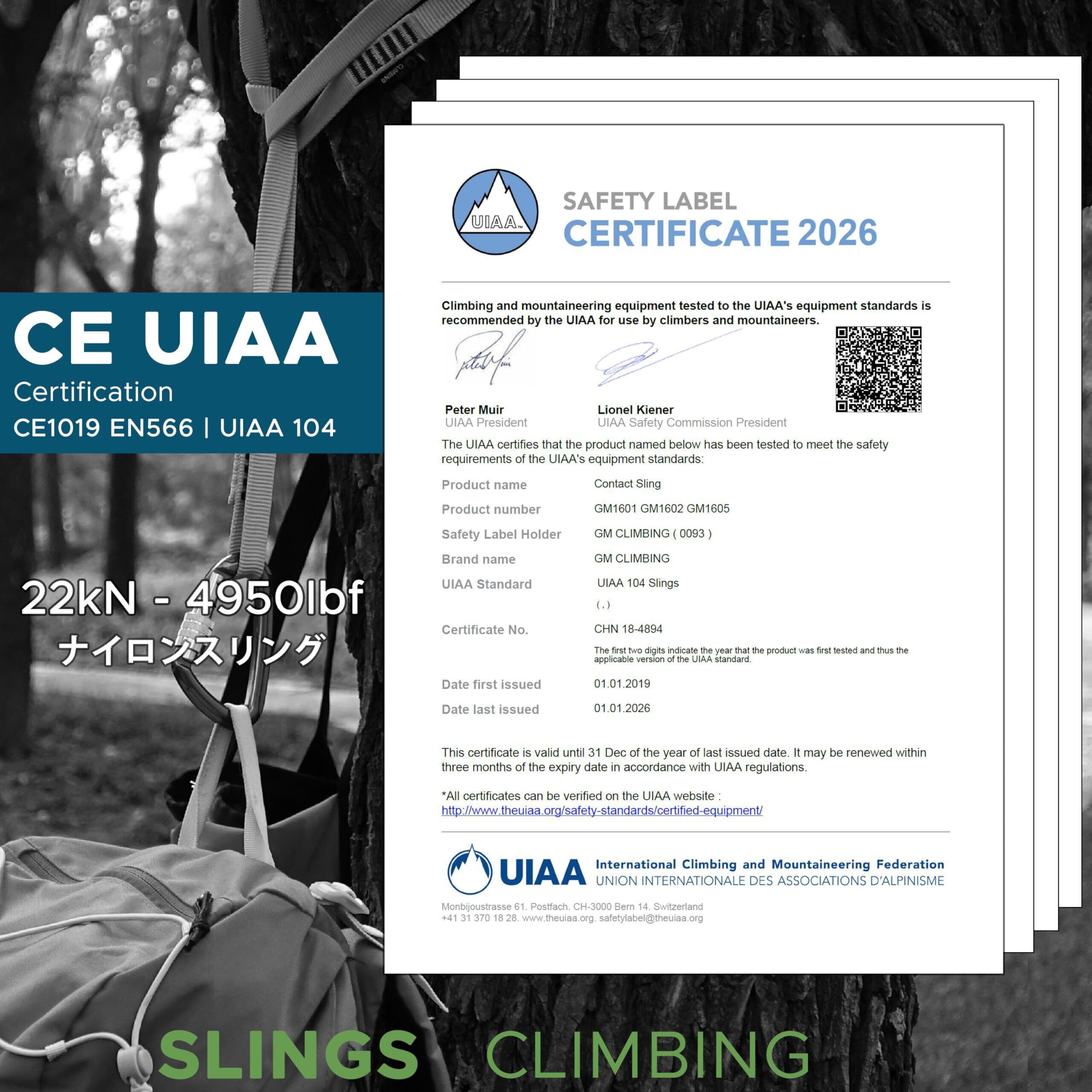 GM CLIMBINGの22kN登山用ナイロンスリングは、柔らかくて耐久性に優れ、高強度と軽量化を兼ね備えます。CEおよびUIAAにより認証済み、3サイズがあり、アウトドアクライミング、登山、レスキュー、確保、ラッペル、ハーネス連結、樹木伐採など、非常に便利で多目的に使用できます。