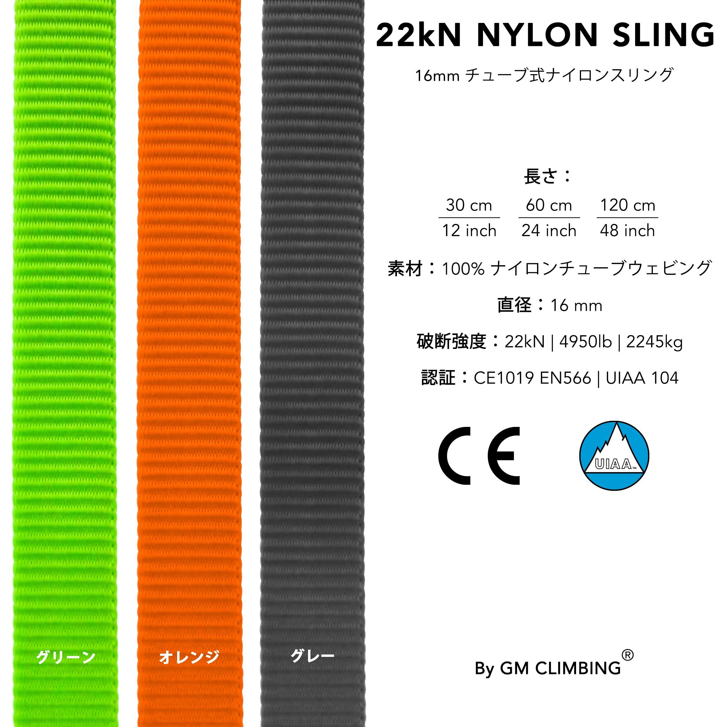 GM CLIMBING UIAA CE 認証 22kN 16mm ナイロンスリング 登山 クライミング用 スリング ランナー アウトドア ビレイ レスキュー ツリークライミング 長さ 30cm 1本入り オレンジ