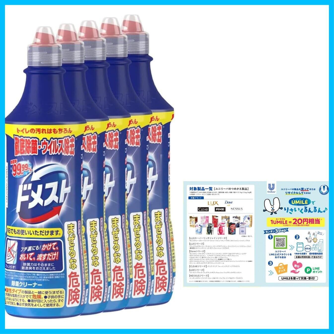 ドメスト 除菌クリーナー 次亜塩素酸配合 500ml×5個 リーフレット付き