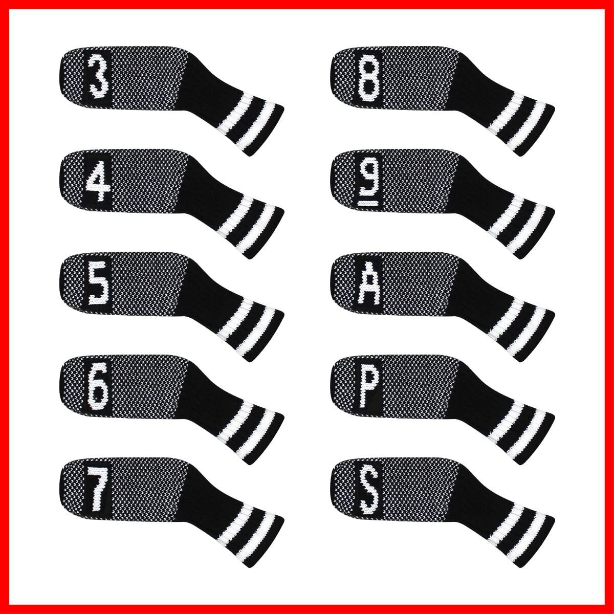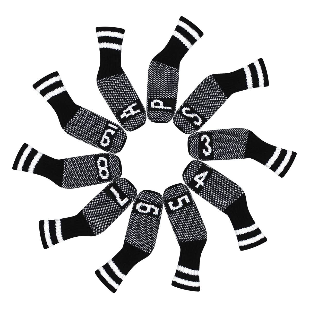 Scott Edward ゴルフアイアンヘッドカバー 10個 セット 入り かわいい 基本的に靴下の形 洗濯可能 耐久性 ゴルフクラブヘッドプロテクター リバーシブルニット