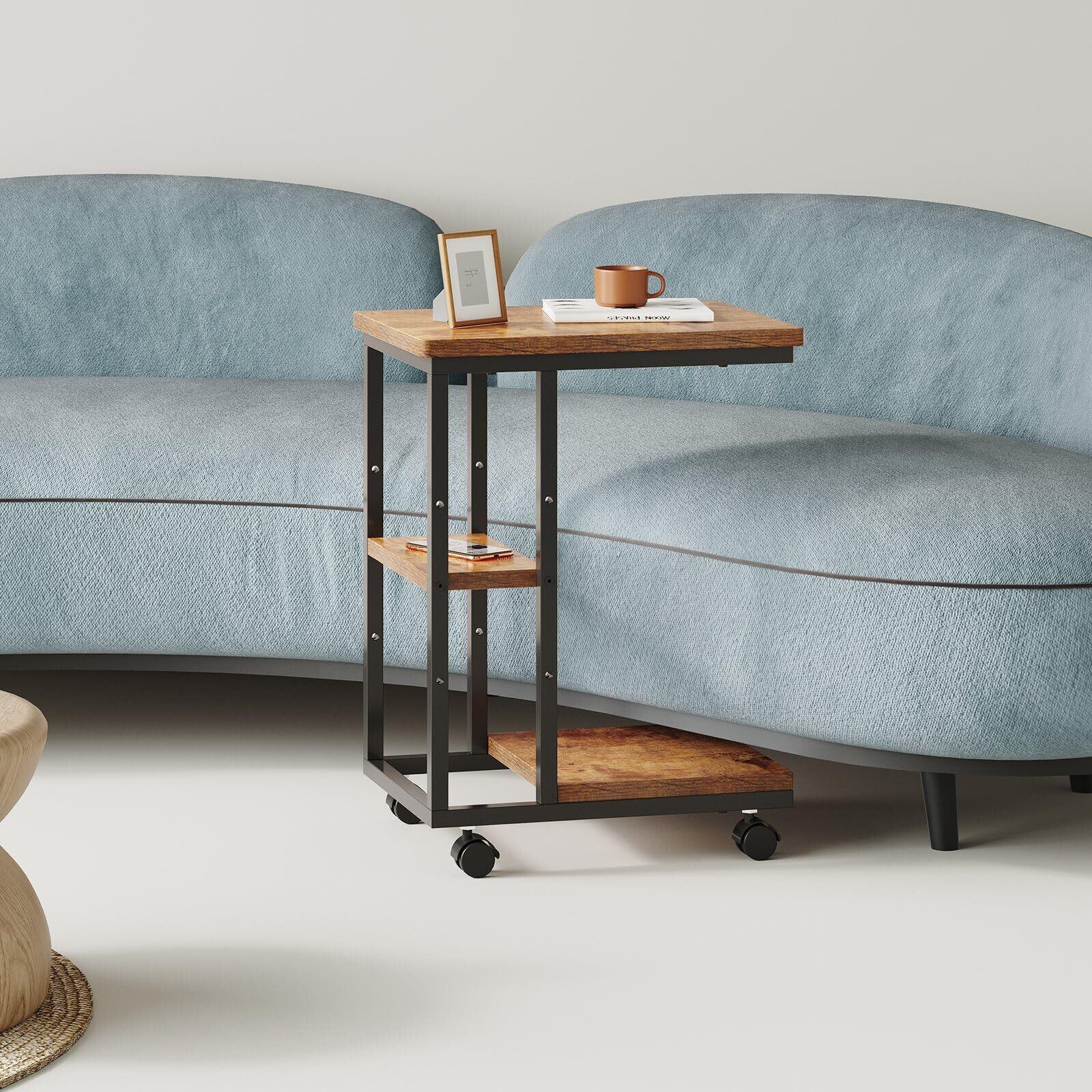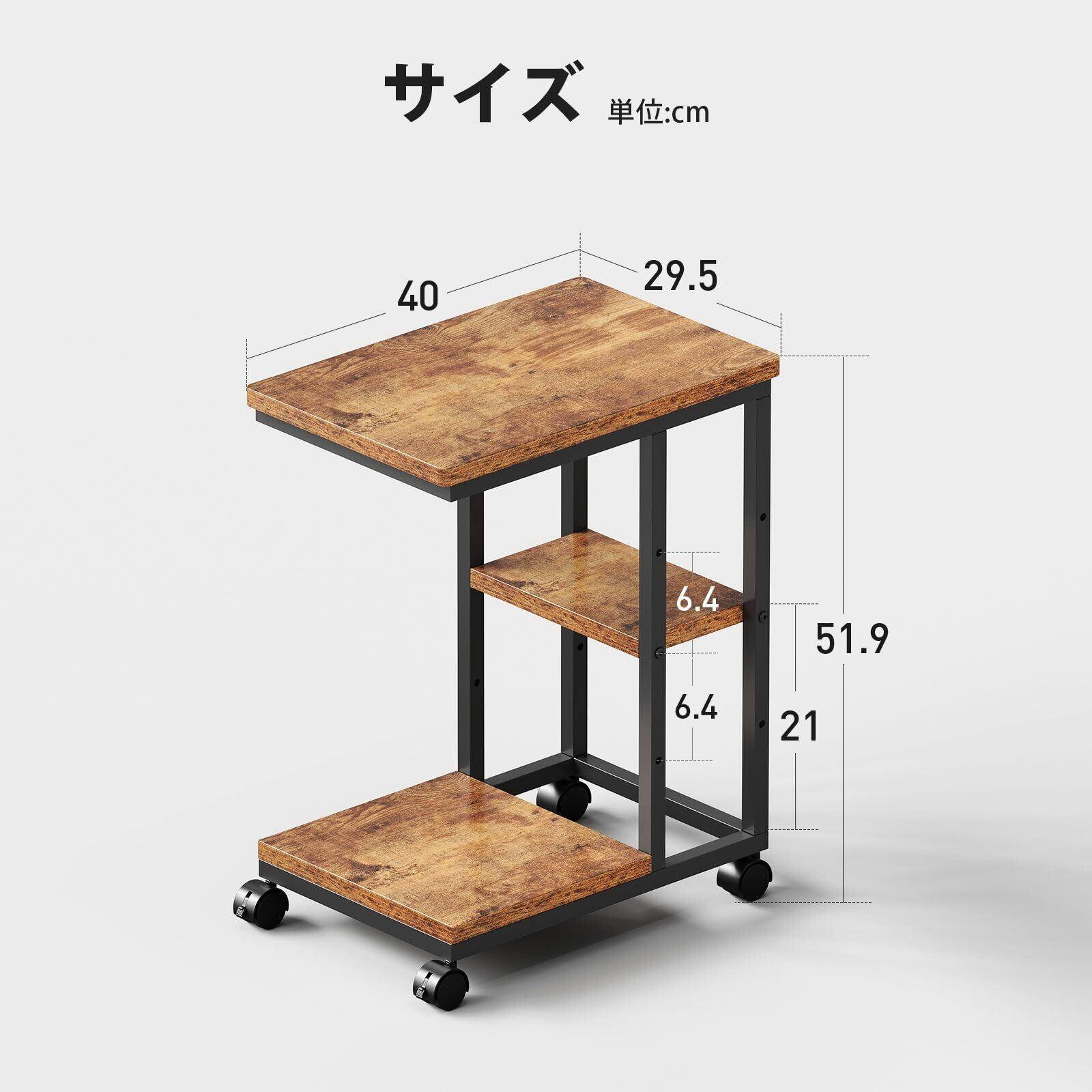 YeTom サイドテーブル キャスター付き ソファーテーブル コの字型ベッドサイドテーブル ソファテーブル 可移動 層板は調節可能 幅40×奥行29.5×高さ51.5cm(キャスター含む)ビンテージ
