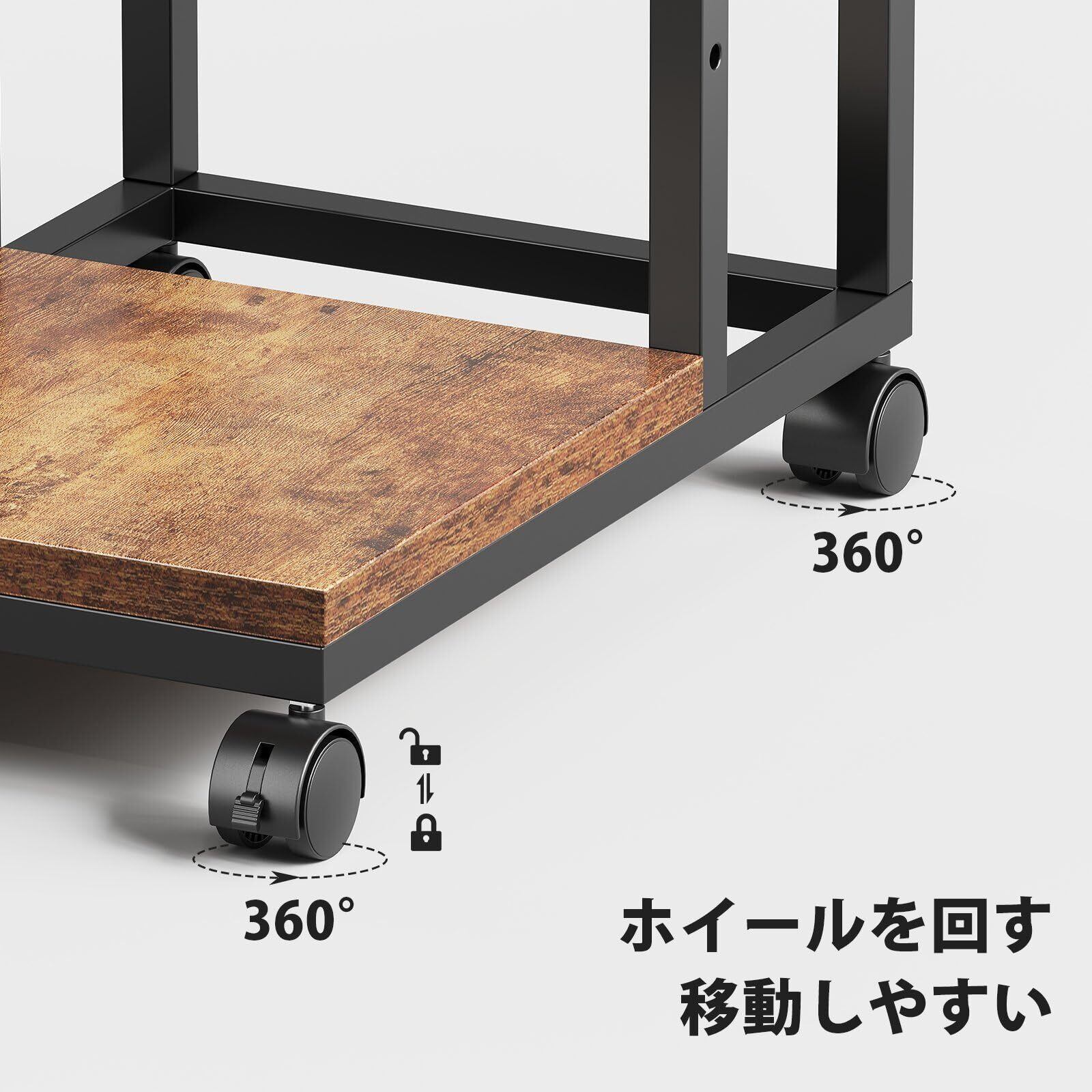 【移動しやすい】サイドテーブルにはキャスターが4つついていて、移動しやすいです。2つはロック付きで、サイドテーブルを特定な位置に固定できます。