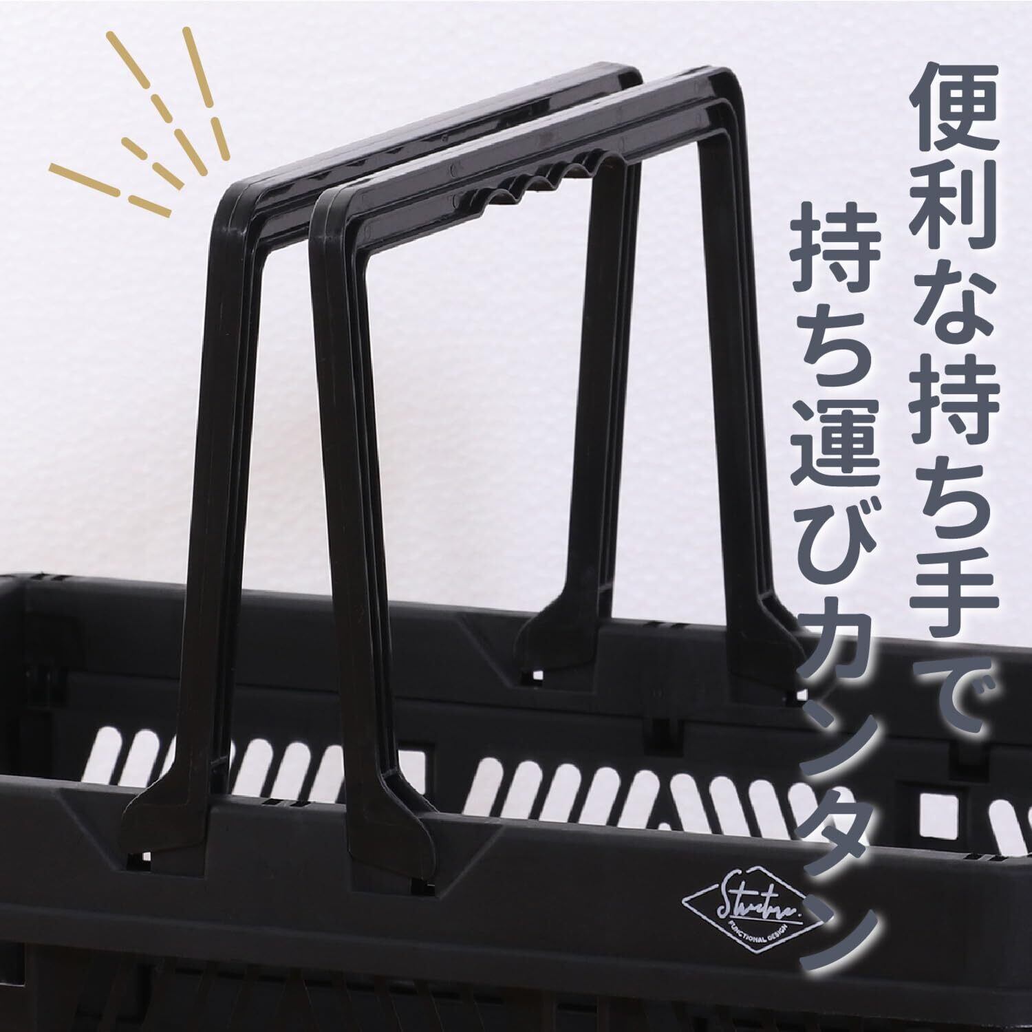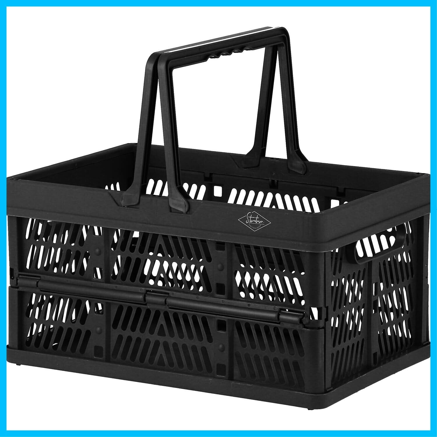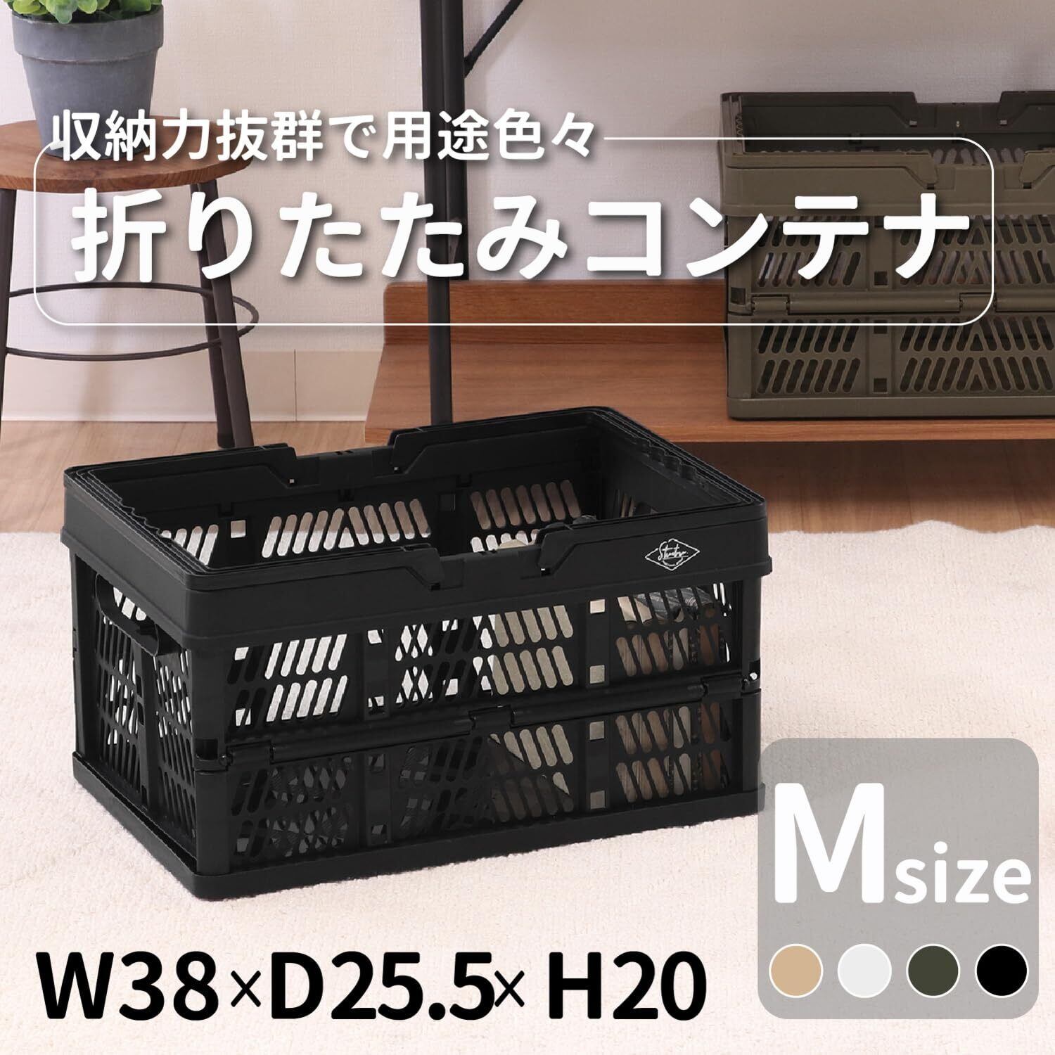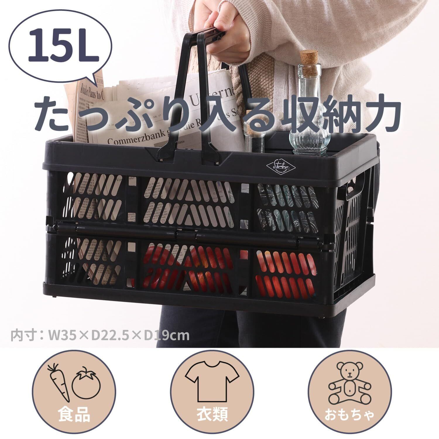 不二貿易(Fujiboeki) 折りたたみ コンテナ かご 幅38×奥行25.5×高さ20㎝ ブラック 取っ手付き 持ち運び簡単 内容量15L Mサイズ 86446