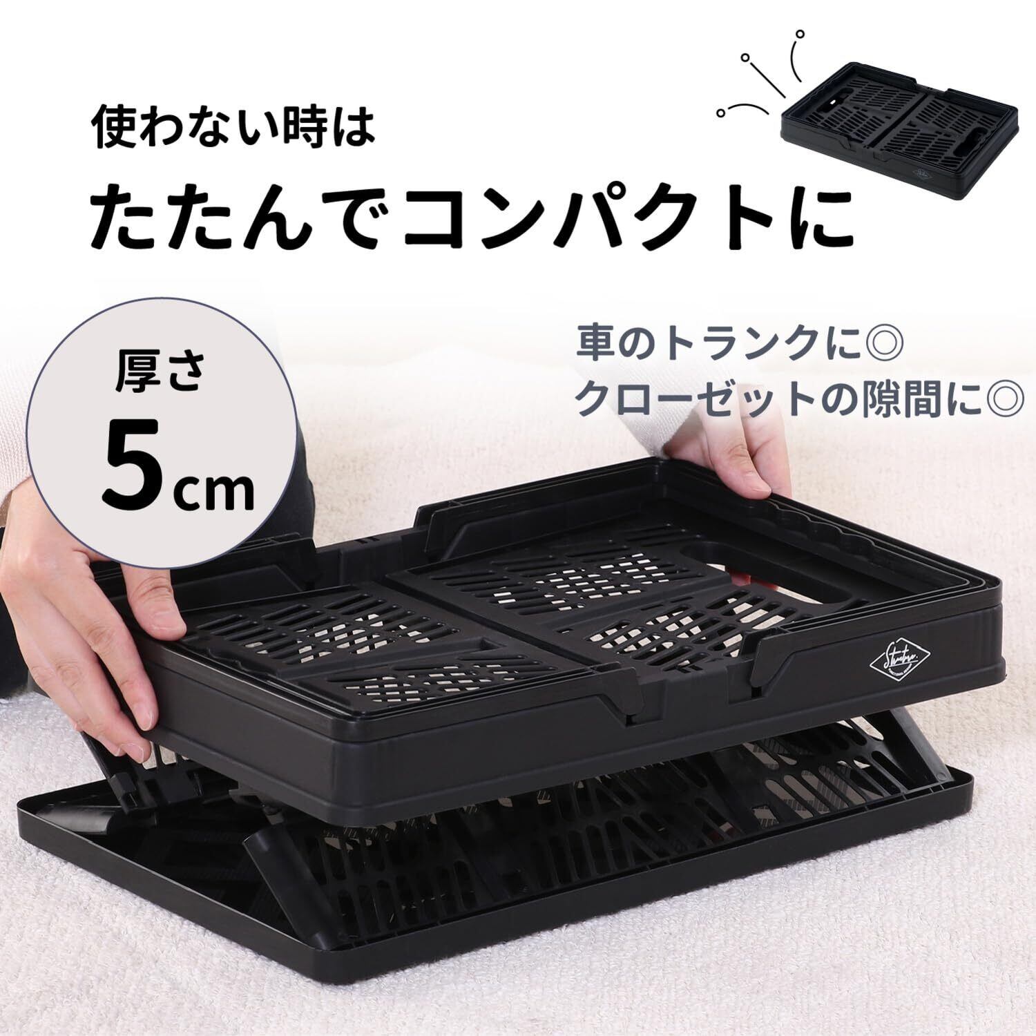 折りたたみ時サイズ:幅38×奥行25.5×高さ5cm、展開時内寸:幅35×奥行22.5×高さ19㎝