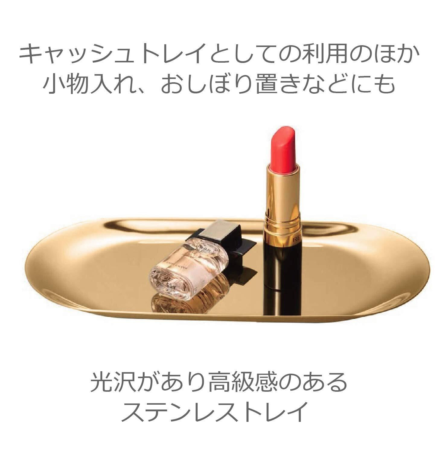 ColorfylCoco ステンレス キャッシュトレイ コイントレイ 会計皿 おしぼり置き 釣り銭 トレー 楕円形 (18cm幅) ゴールド 金
