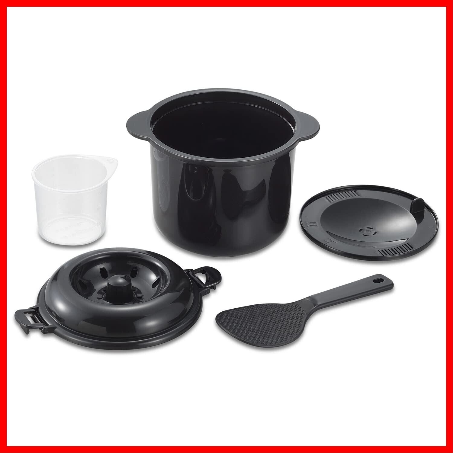 <b>材質:</b> 本体・中蓋・外蓋/耐熱ポリプロピレン(備長炭入り)、計量カップ/ポリプロピレン、飯ベラ/ポリプロピレン(備長炭入り)