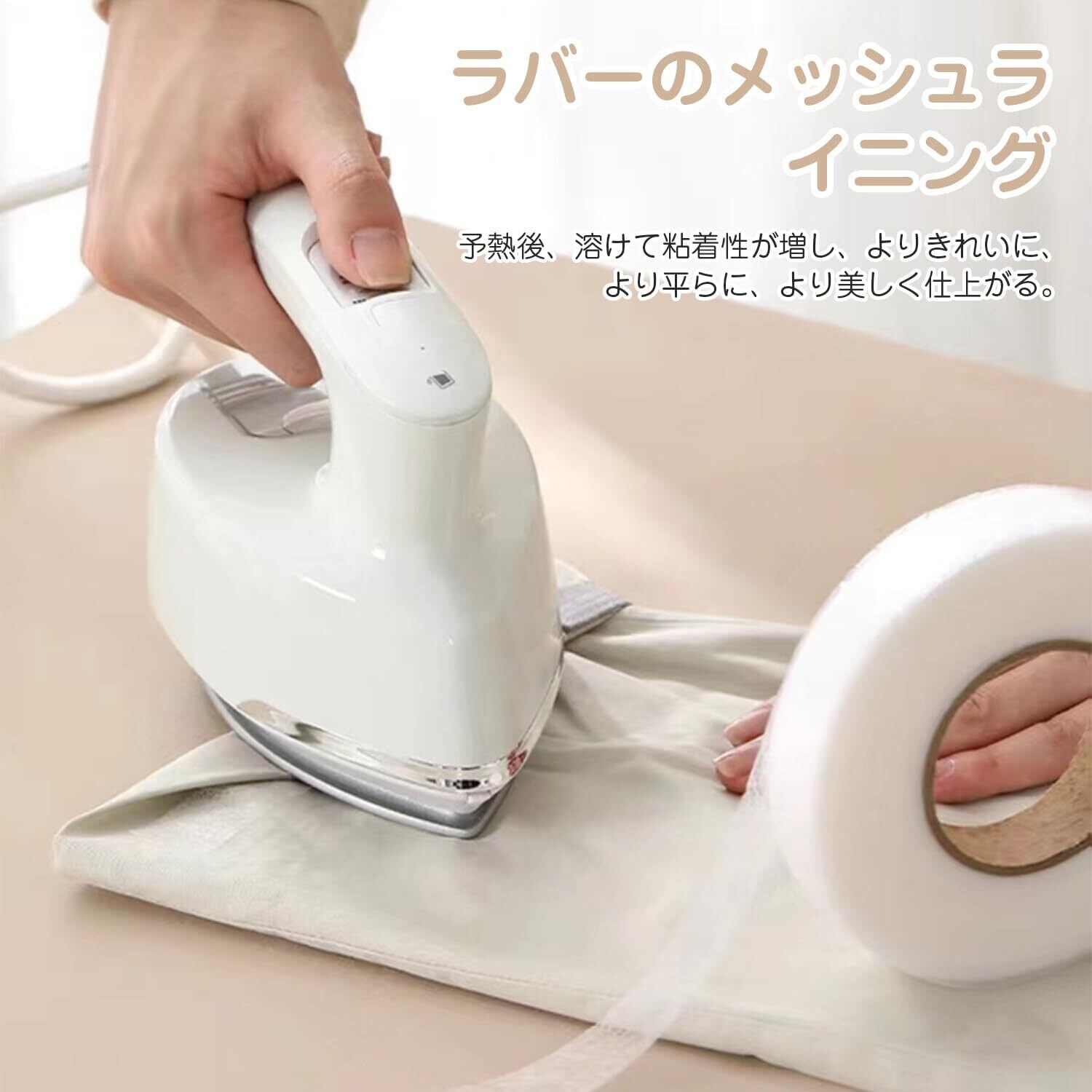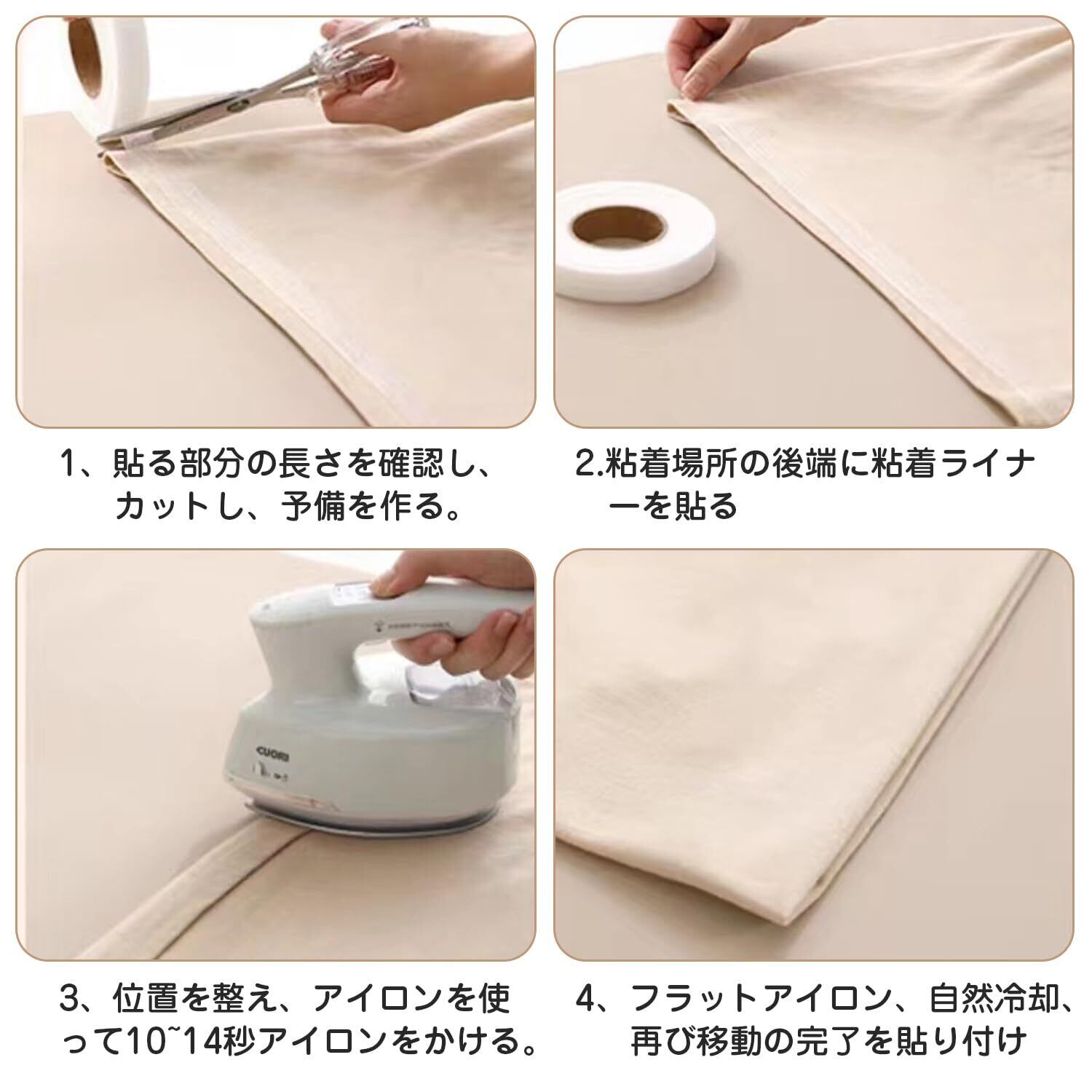【使いやすい】アイロンテープは、それを使用するときは、2層の生地の真ん中に置き、アイロンを140℃〜160℃に設定し、10〜15秒間均等にアイロン(特定の時間は、ファブリックに応じて変化させることができる)、2層の生地が接着されます。( ご注意:アイロンが両面テープに直接触れないようにしてください、アイロンの上にくっつくと掃除がしにくくなります。)